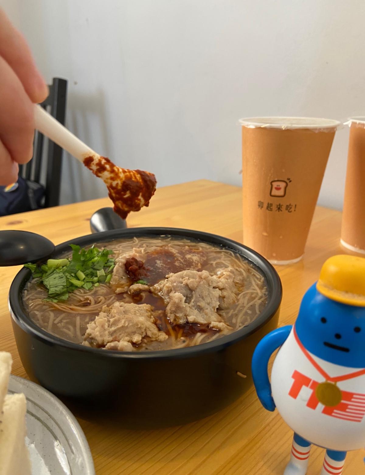 台中經典早餐,麵線with雞腿堡中西合併的口味
