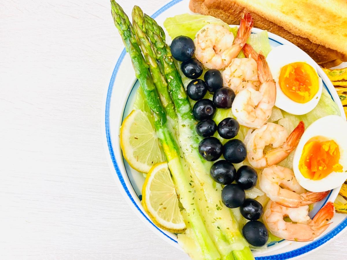 檸檬鮮蝦搭起司🧀️蘆筍溫沙拉🥗