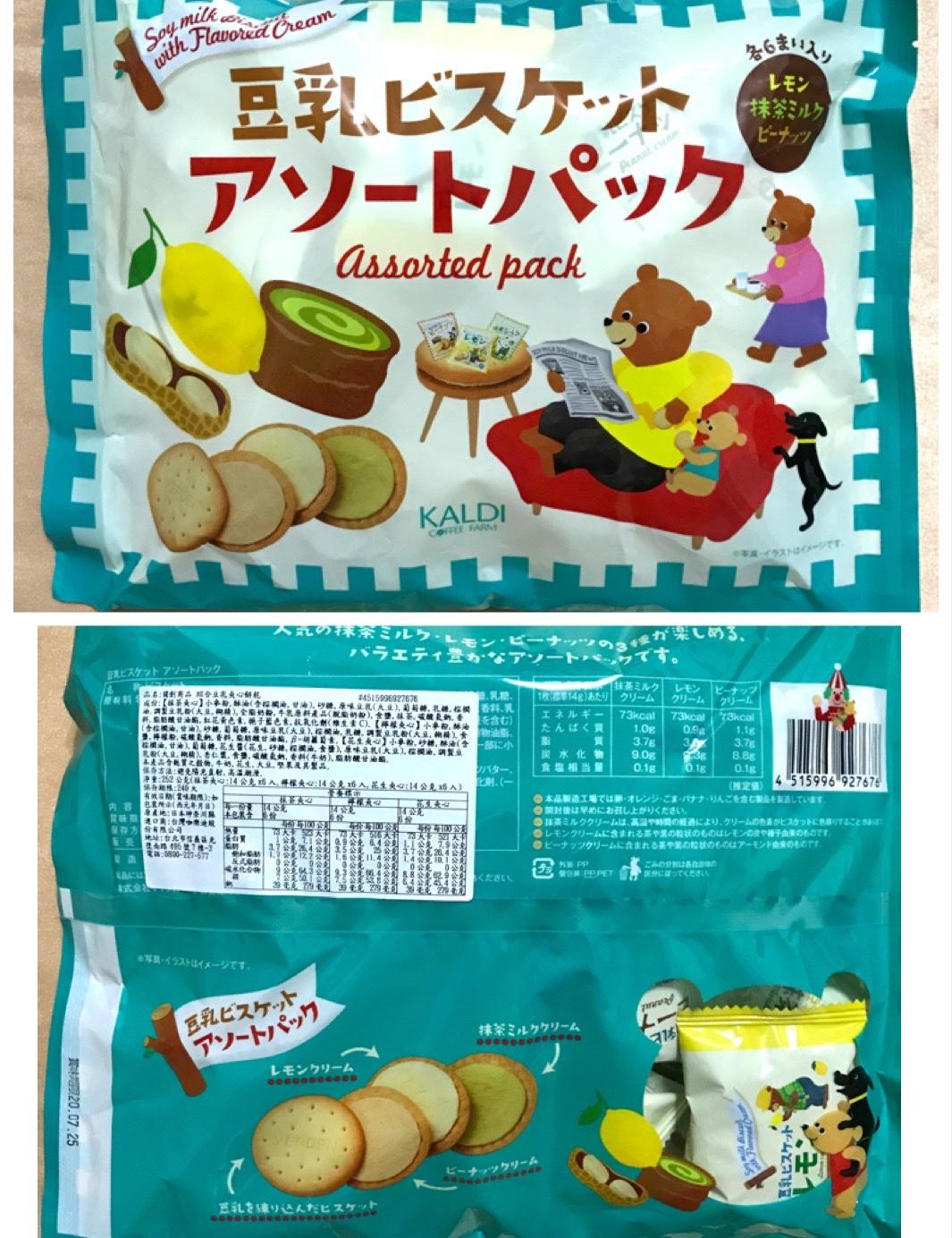 餅乾是由豆乳製成,味道濃郁、口感酥脆,綜合口味有:花生、抹茶、檸檬等,3種不同口味的奶油內餡。