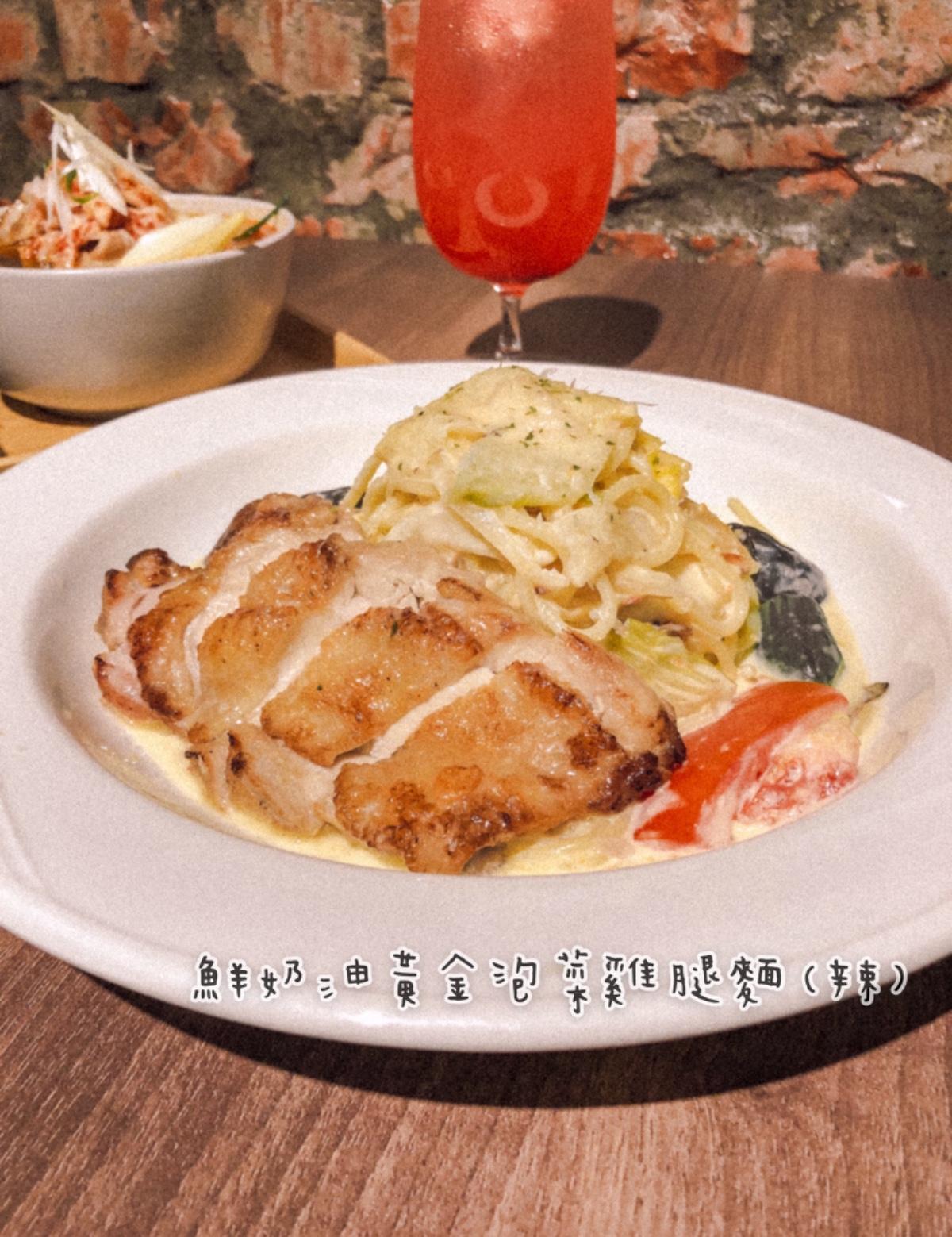 🌀鮮奶油黃金泡菜雞腿麵(辣)NT $240/份