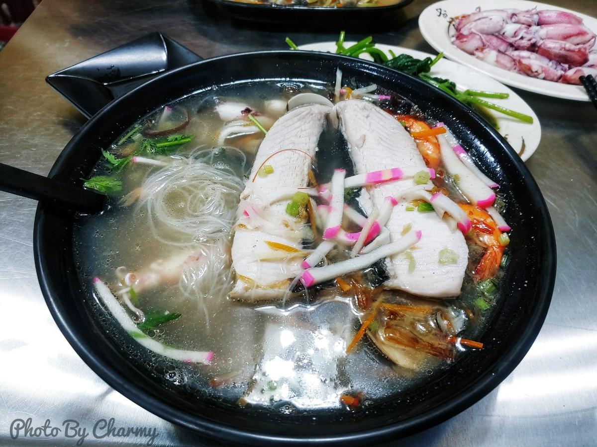 後來我的海鮮虱目魚湯米粉上桌,天哪~~~料跟照片上一樣