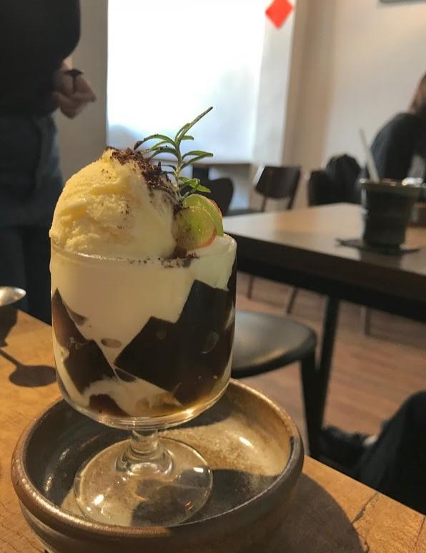 -日日特製咖啡凍$100/份,融合香草冰淇淋與當季水果,當飯後甜點加一百分!