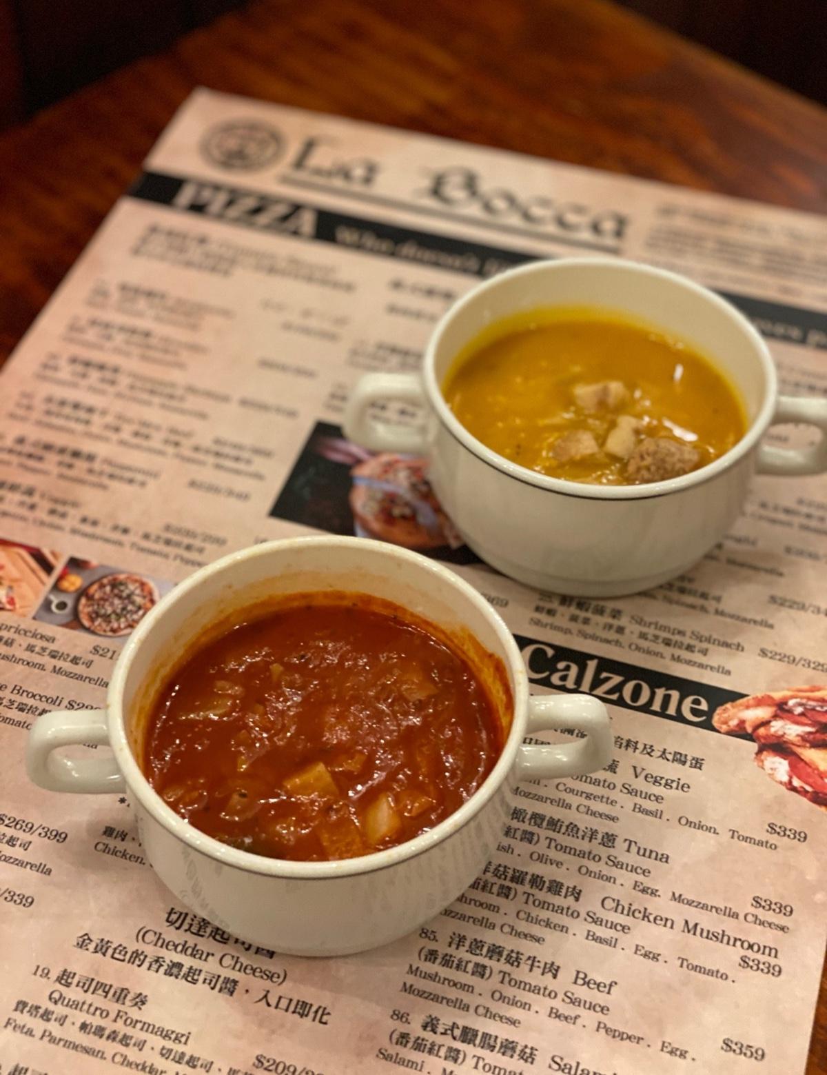 有南瓜濃湯和義式蔬菜濃湯