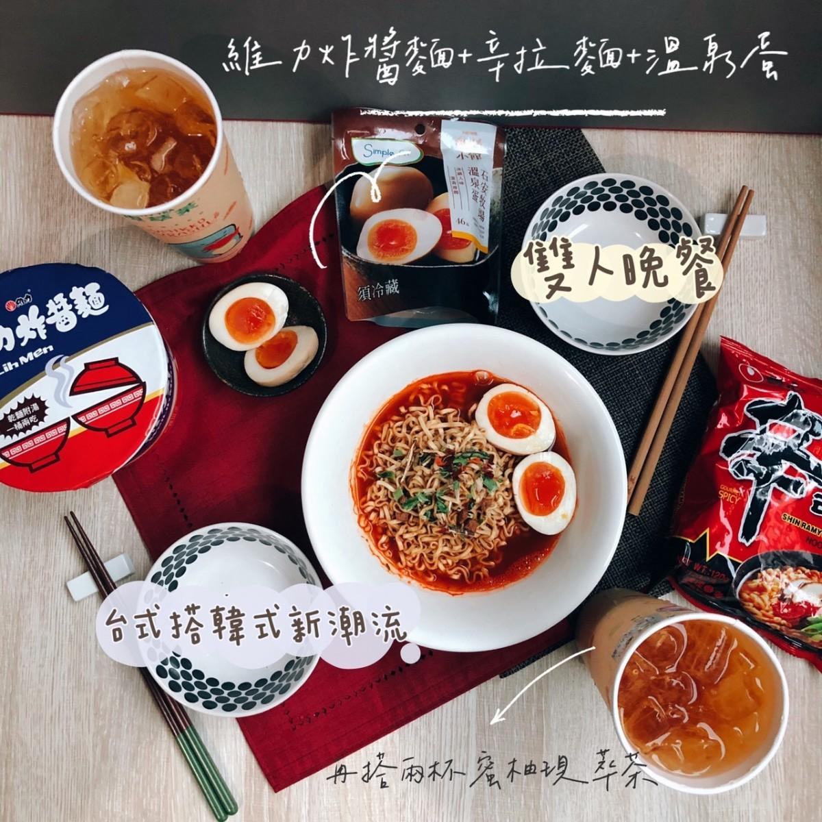 這樣搭~雙人晚餐==>蛋+辛拉麵 +維力+現萃茶 只要176元