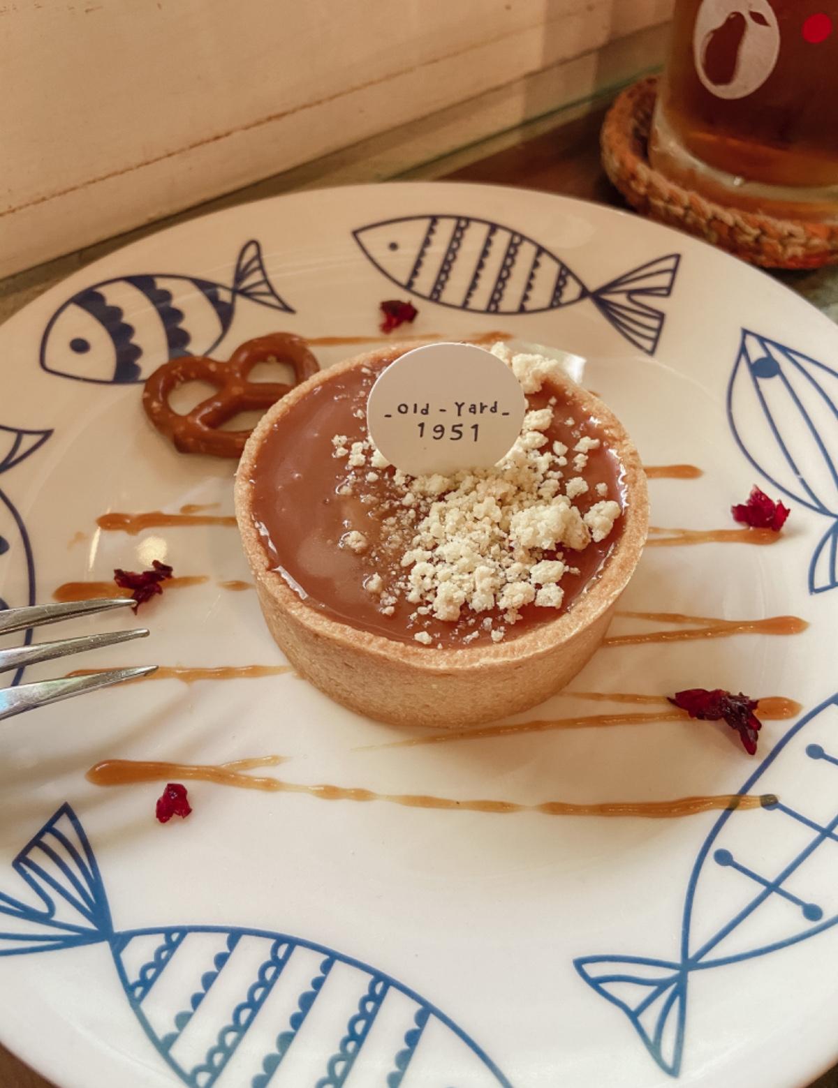 乳酪上淋著滿滿海鹽太妃糖漿,上面再灑著餅乾碎屑,塔皮脆脆口感,鹹鹹甜甜整個很好吃