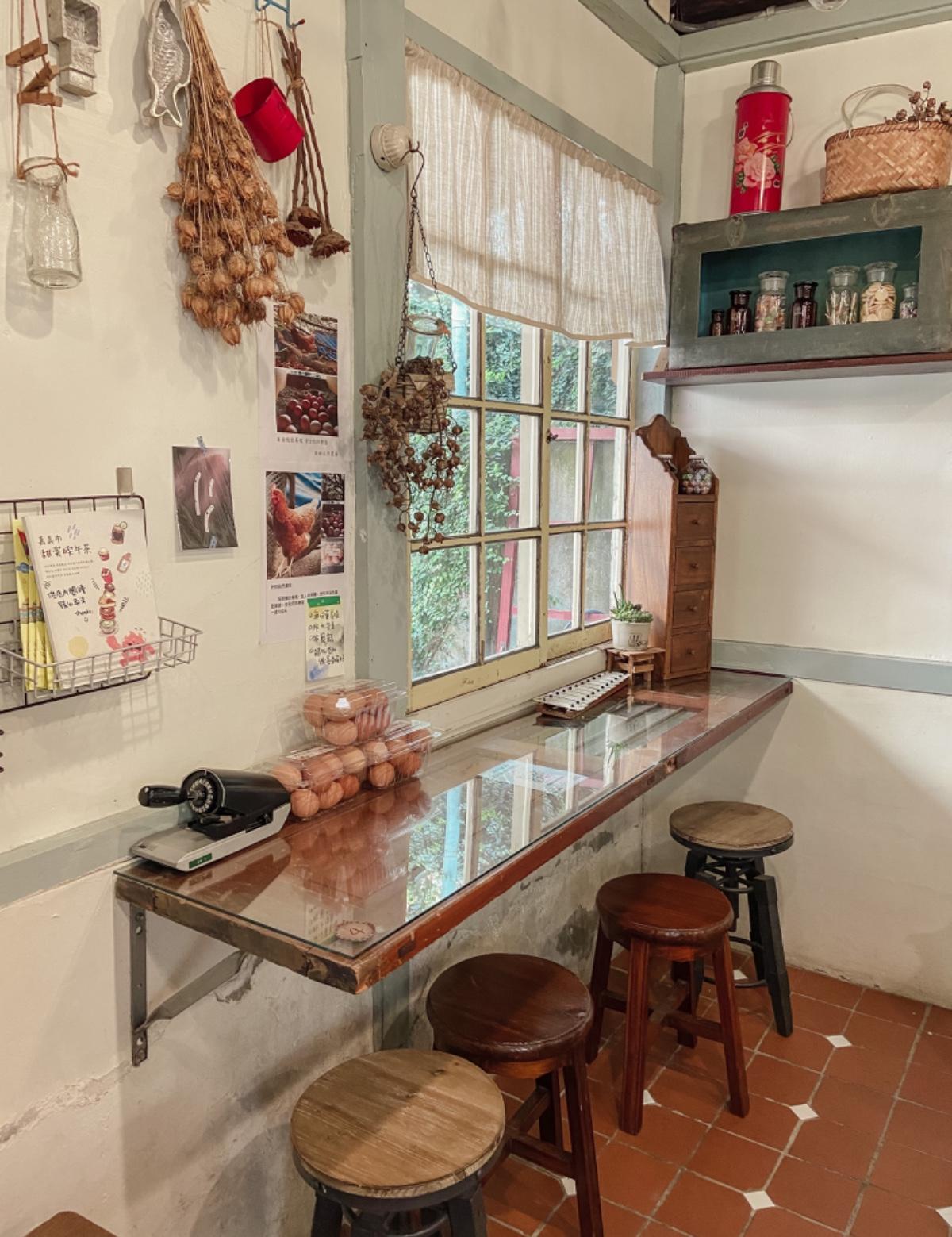嘉義「老」系列的老屋,因為出自於同一位老屋改造的改造師巧手,利用二手老傢俱、鄉村風格生活雜貨、植物等,佈置成了可愛模樣的復古風格,而這間「老院子1952.想喝」,就是老系列之一喲!