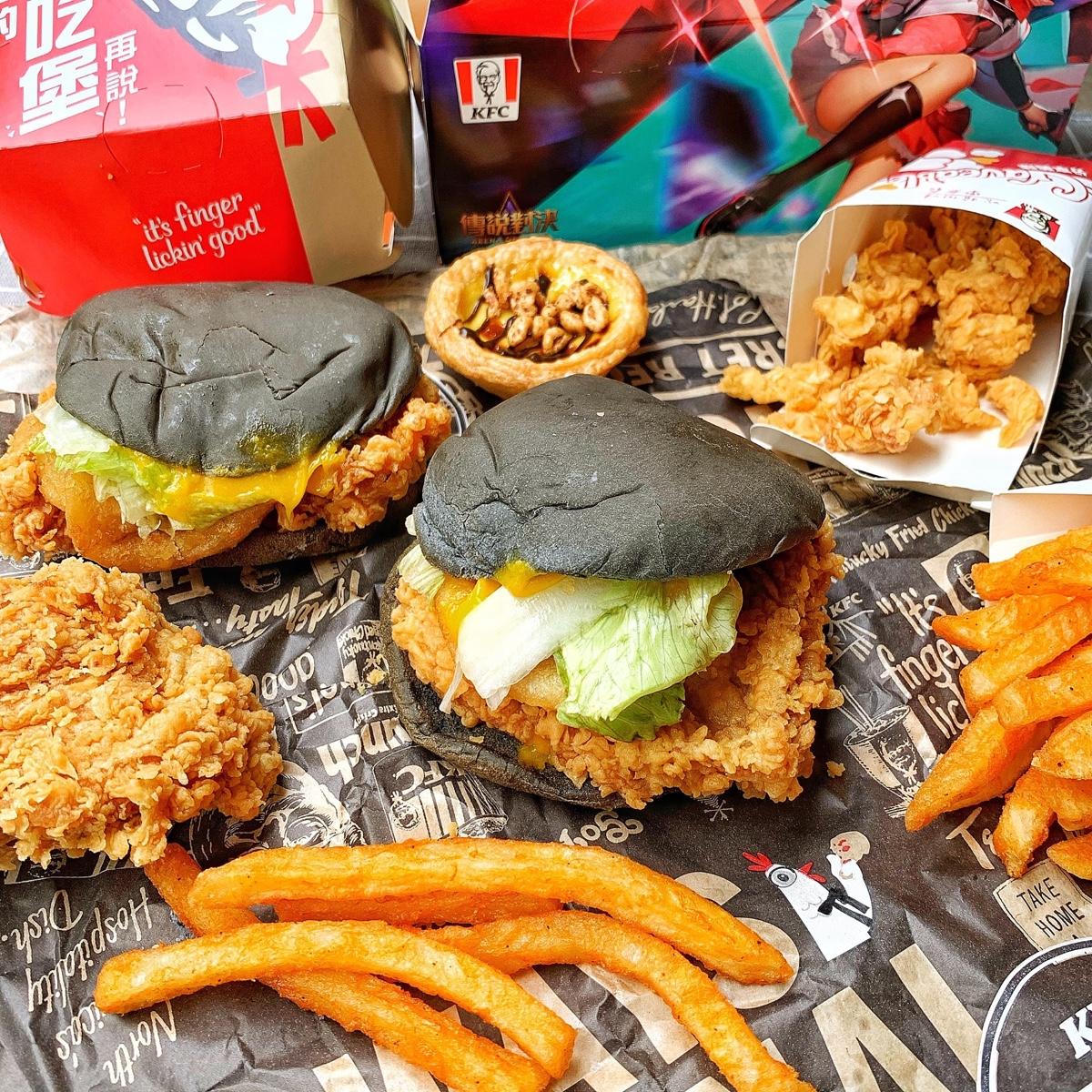 這次搭配黑麵包,再以萵苣、洋蔥圈及經典咔啦雞腿排,濃郁金莎醬,超滿足的💕