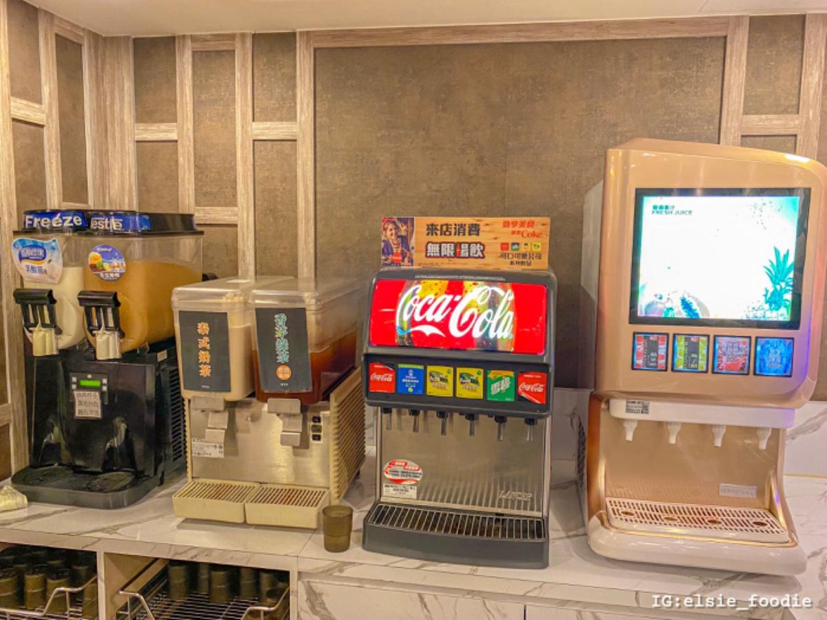 不僅如此,飲料區除了汽水區,泰式奶茶、香茅綠茶、水果醋、花茶、咖啡機超級多種。