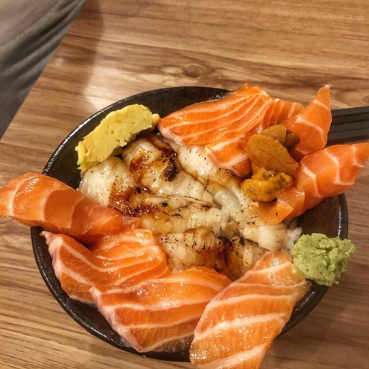 🔸 炙燒鮭魚比目魚鰭丼加海膽 ⓃⓉ 250+50
