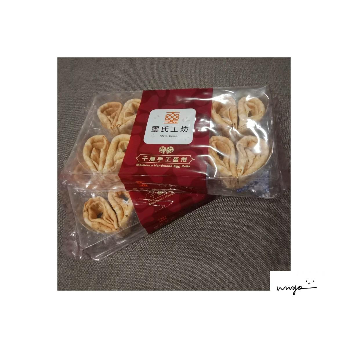 其實我一直都對蛋捲不感興趣,不管是傳統長條中空狀還是新型的8結蛋捲似乎都少了一點什麼(一個太薄一捏就碎光光,一個是形狀不好入口)但是璽氏工坊蛋捲我超愛!!!家人吃了也表示喜歡、不過挑嘴的男友就比較喜歡薄一點的水滴蛋捲(雖然這麼說,但他依舊吃光光😌
