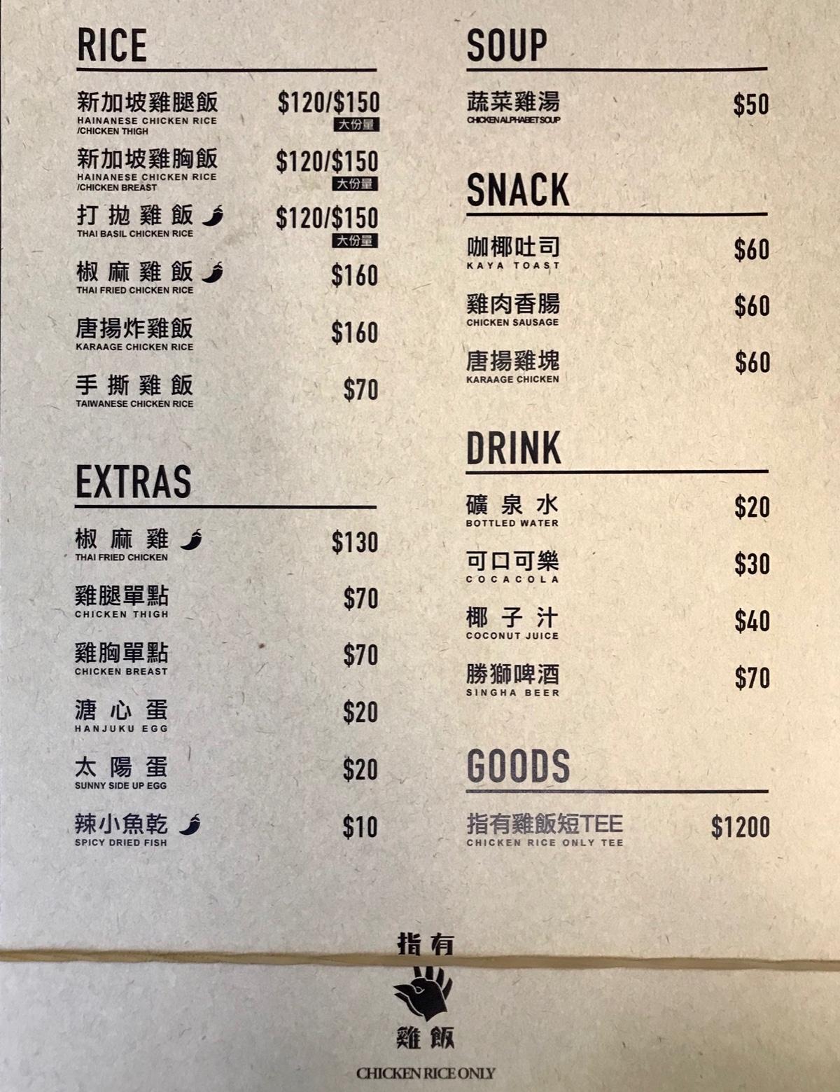 就如同店名一樣,只有販售「雞飯」,最暢銷熱賣的是打拋雞和椒麻雞,可惜當日中午生意太好,還沒晚上就早已售罄,沒吃到真的超可惜~