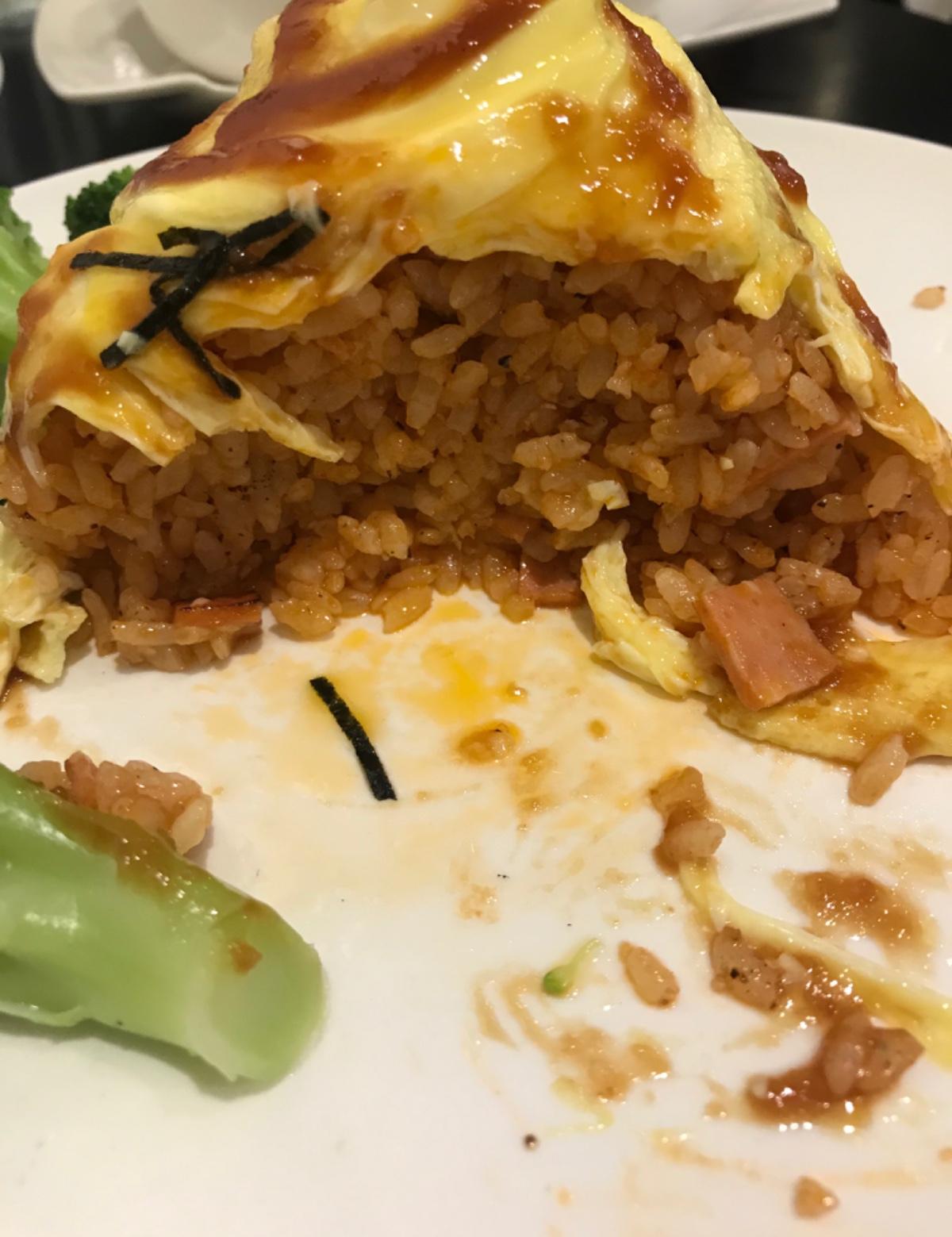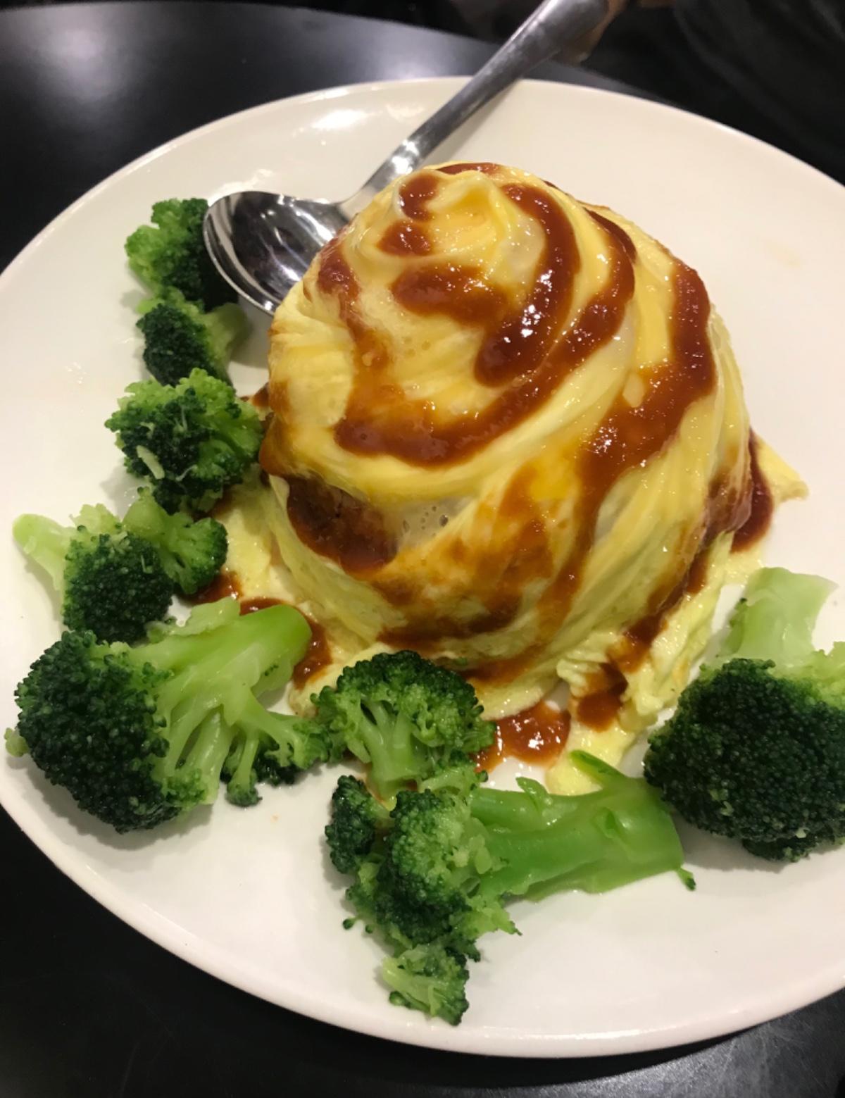 日式蛋包飯𥚃面是蕃茄炒飯,上面的蛋包用的好美,讓人很難下手,這道口味較清爽適合口味較淡的蔬友們。