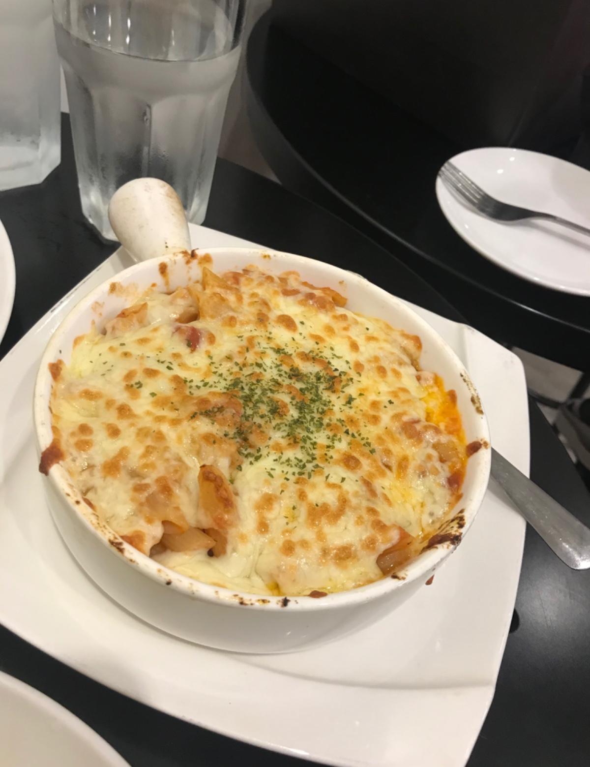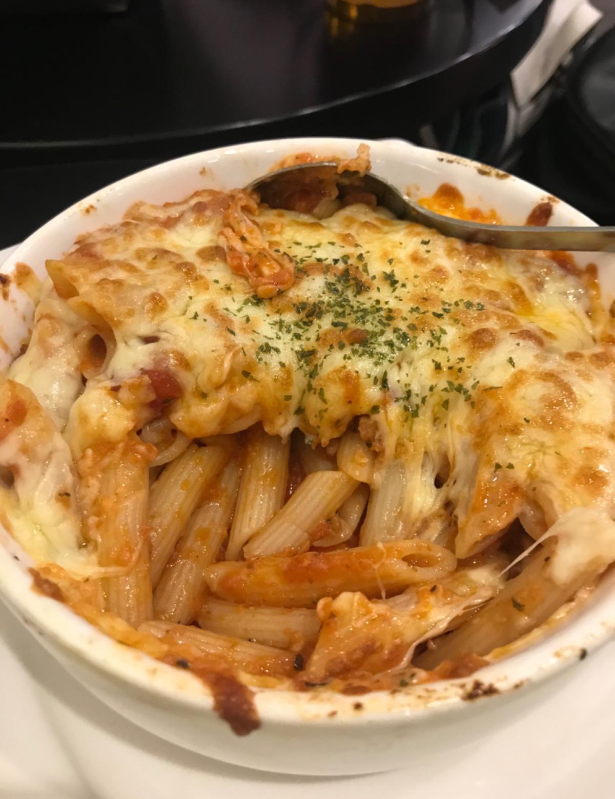 我們都很喜歡筆管麵但大都義式餐廳都直麵較多,所以在這吃的到筆管麵真的很開心,它的醬是肉醬口味稍重,淋上滿滿的起司去烤真的會胖😄。