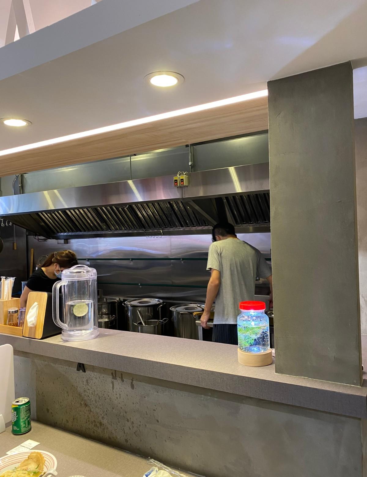 店面不大,採開放式廚房,內外場加起來大約6個人