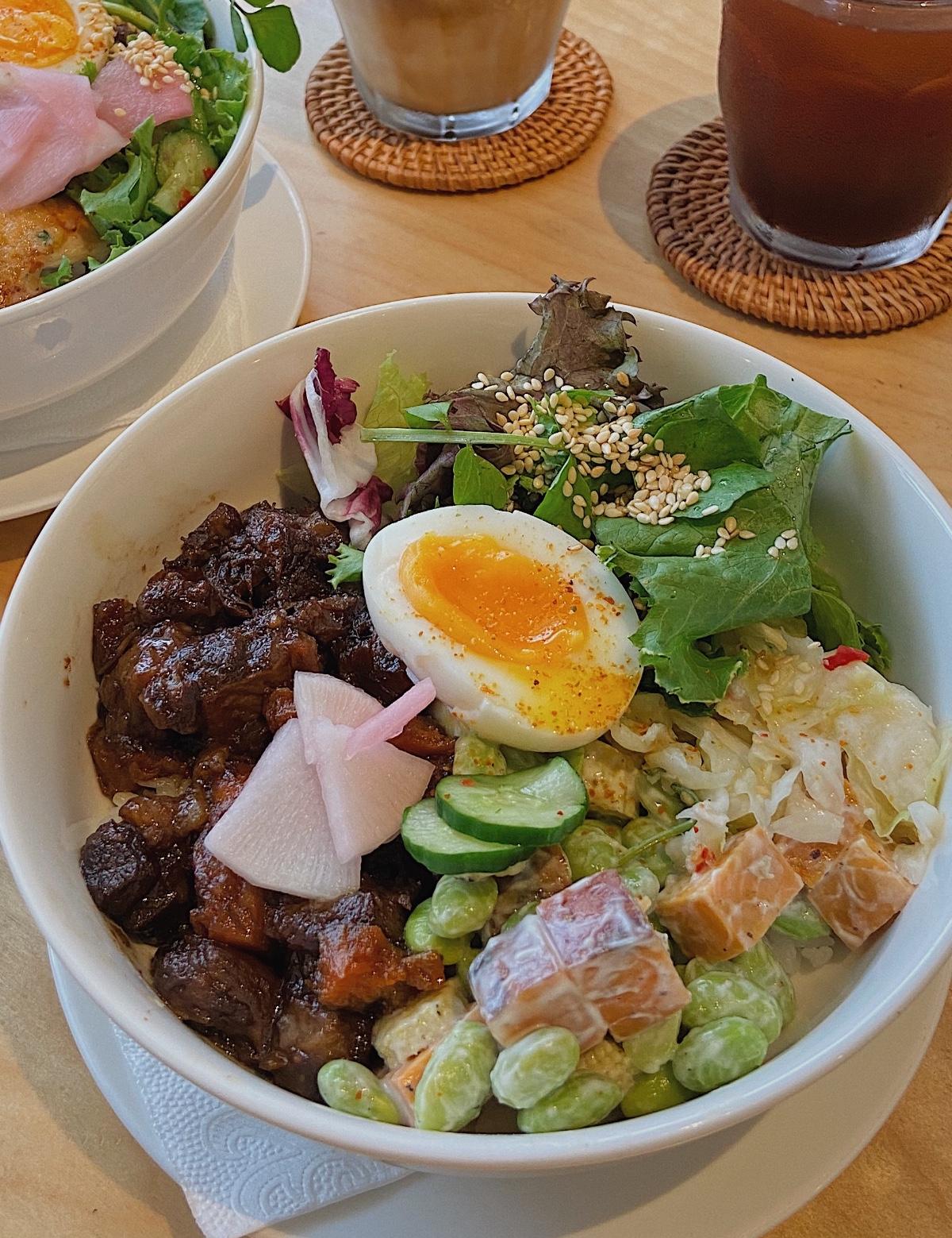 朝思暮想許久的牛肋飯終於吃到了,醬汁味道實在誘人,特別是牛肉燉的軟爛,裡面也參了些許馬鈴薯跟蘿蔔,搭在一起真的絕配,一旁的是溏心蛋,台式泡菜,綠色豆子(?)跟醃蘿蔔,一切都好棒,真的是後悔沒有加飯而已!