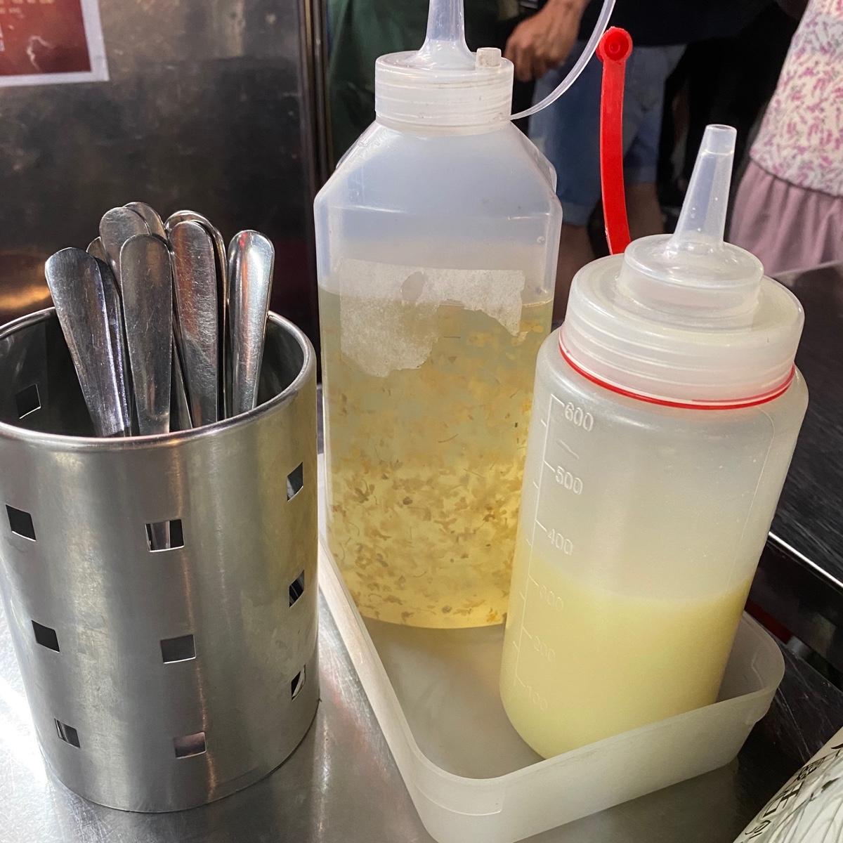 吃完湯圓還剩很多冰 就可以加一點店家準備的檸檬汁 瞬間變成好喝的檸檬桂花蜜汁 冰涼有消暑 不過喝多會有點小膩