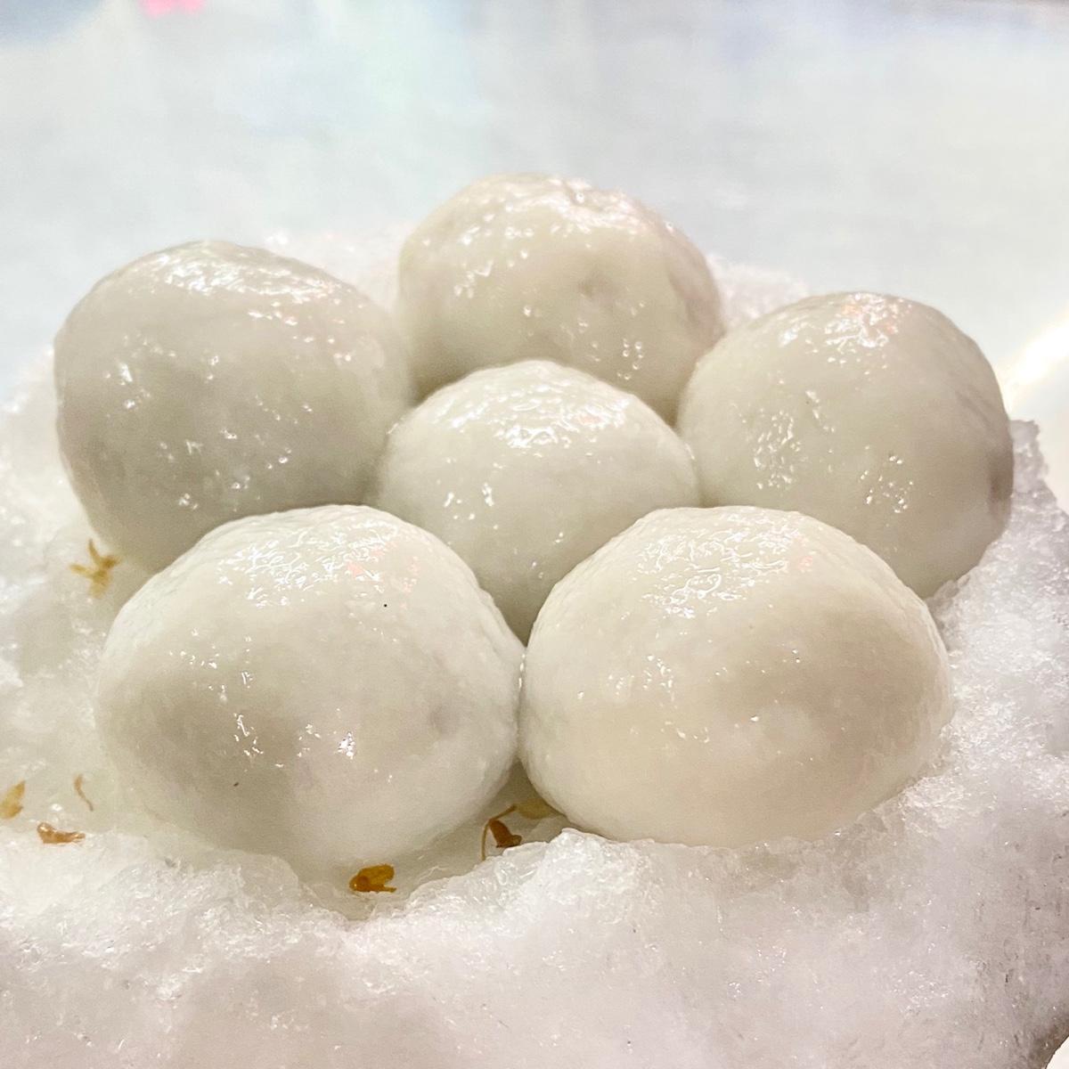 店家用傳統剉冰機先裝上滿滿的冰沙 再加上甜甜的桂花蜜 最後放上剛煮好熱騰騰的湯圓 湯圓吃起來芝麻味香濃偏甜 而且要趁熱趕快吃比較軟嫩Q彈 放在冰上太久會讓皮硬掉