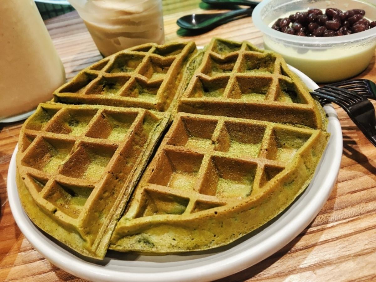剛烤好的鬆餅酥酥脆脆還有淡淡的抹茶香搭配甜而不膩的冰淇淋🍦真的好趁熱吃才真的好吃喔