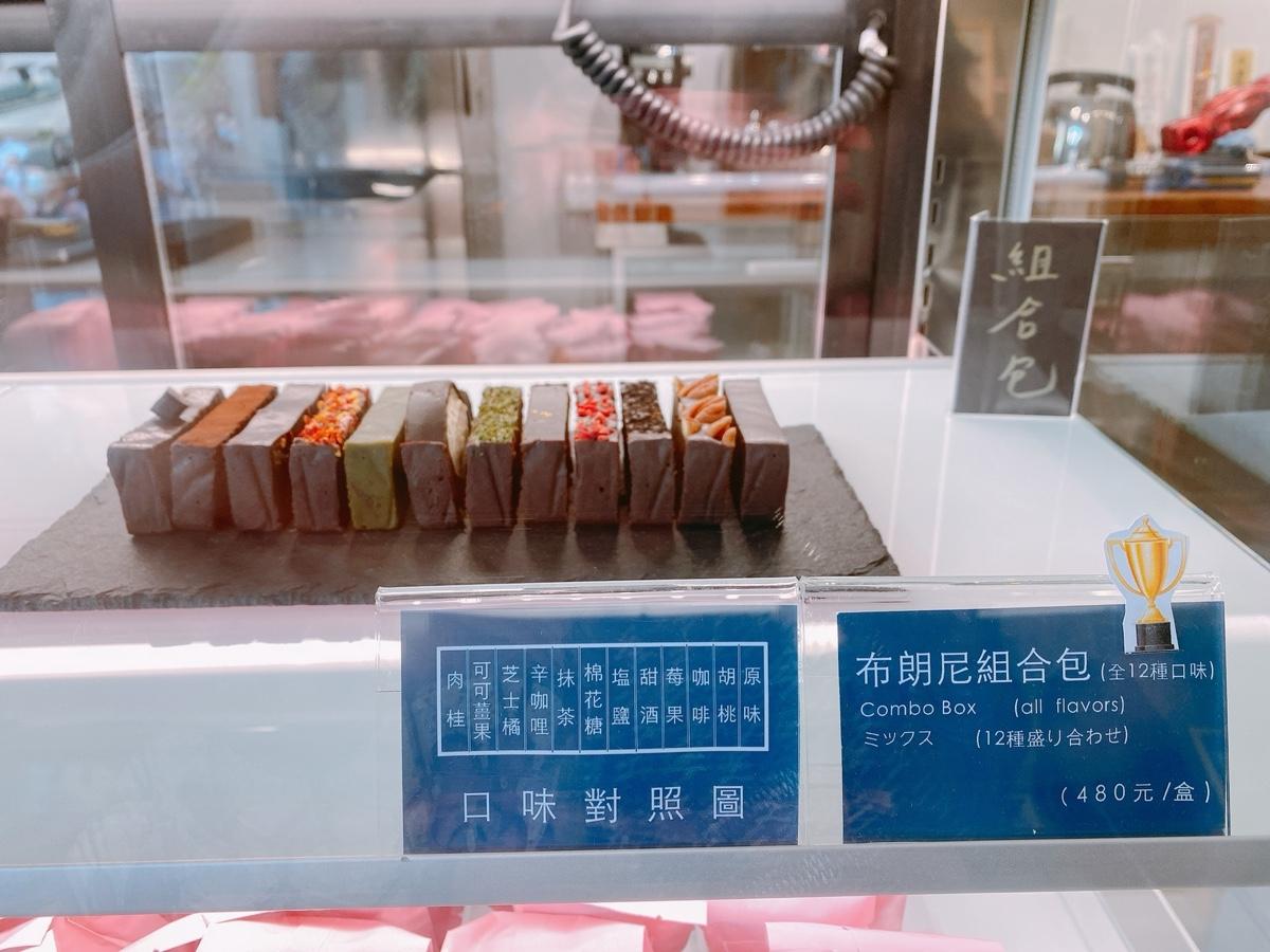 人超多⋯等有點久⋯🥺 店員只有一位⋯一次只能進入3組客人 包裝很有質感🛍🛍 綜合口味 $480 布朗尼組合包囊括全部10種口味, 從左至右依序為芝士橘、辛咖哩、抹茶、棉花糖、塩鹽、甜酒、莓果、咖啡、胡桃、原味。 單片 $45 #店內超小 #台南快閃 #堯平 #布郎尼