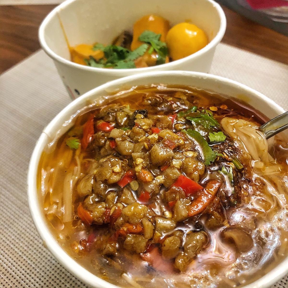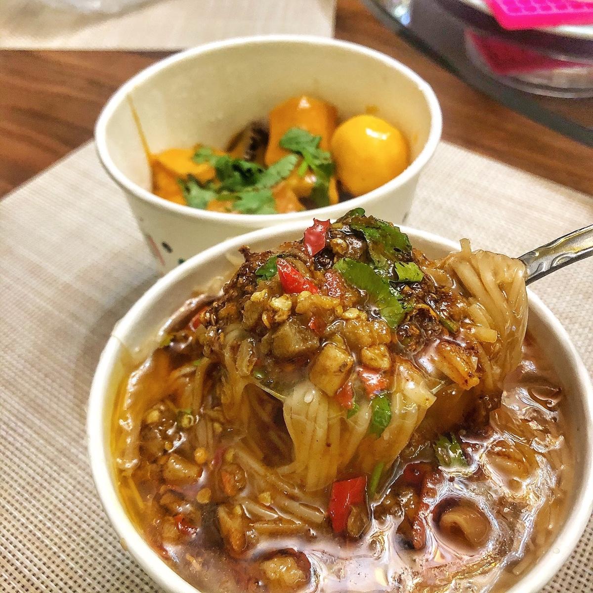 麻辣麵線上加的辣油+麻辣蘿蔔乾真的超夠味,勾芡不會過多,麵線量又很夠😍😍😍