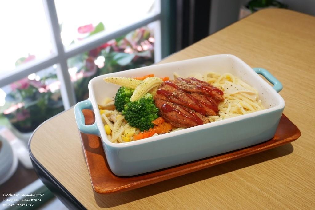 麵條很Q彈,奶油味道很濃郁,搭配的蔬食也很豐富,這份吃完超有飽足感