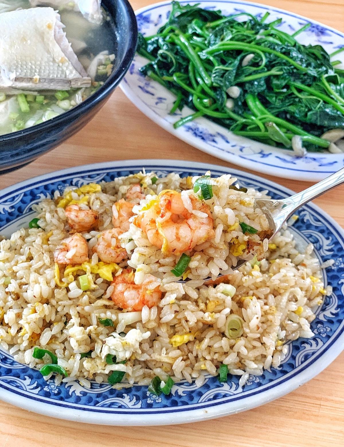 店家標榜現撈蝦仁炒飯,粒粒分明的炒飯,