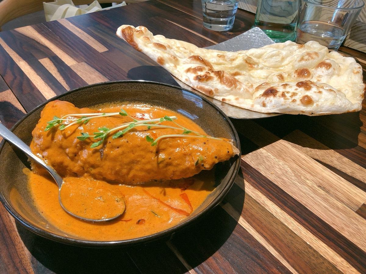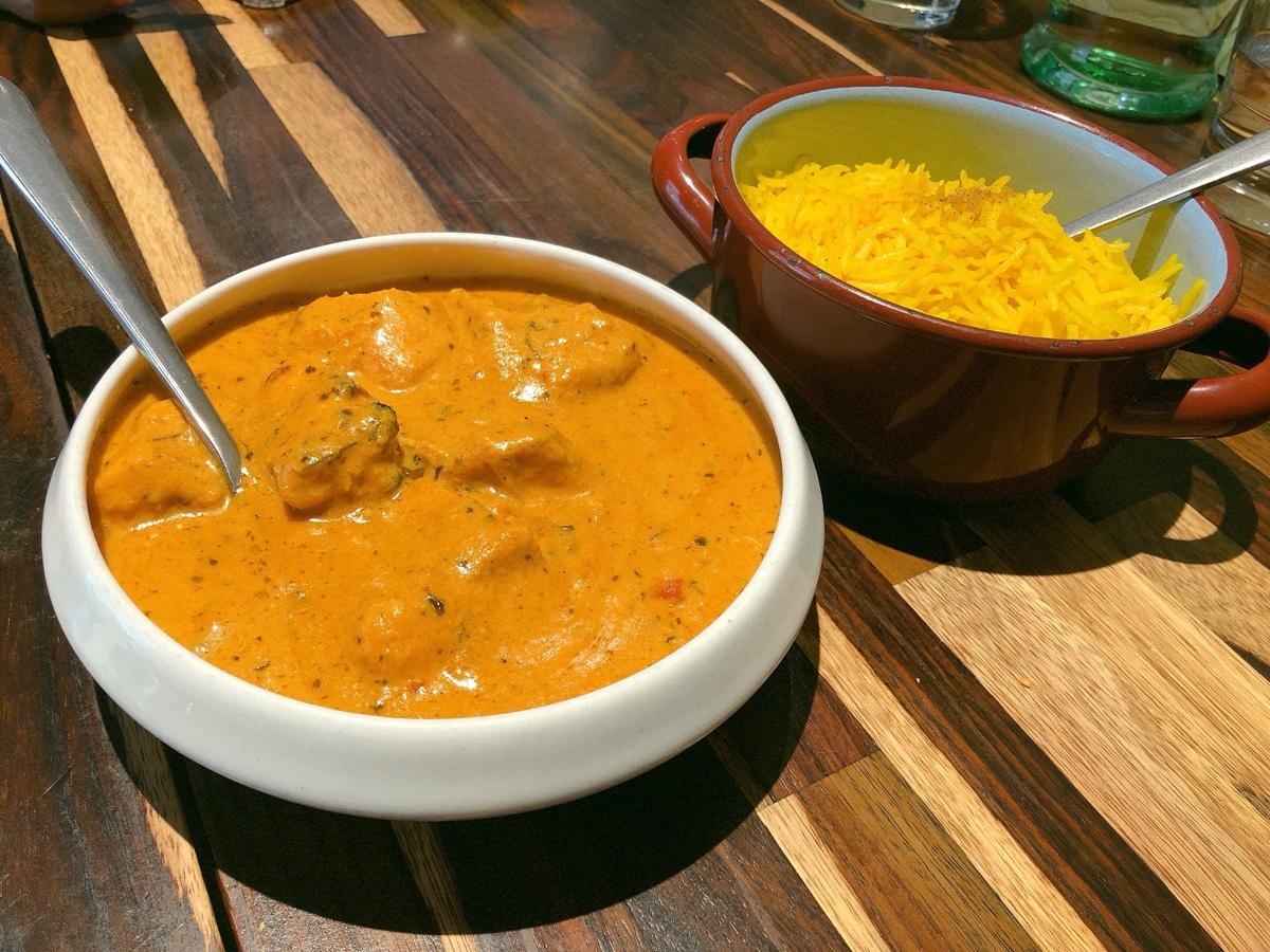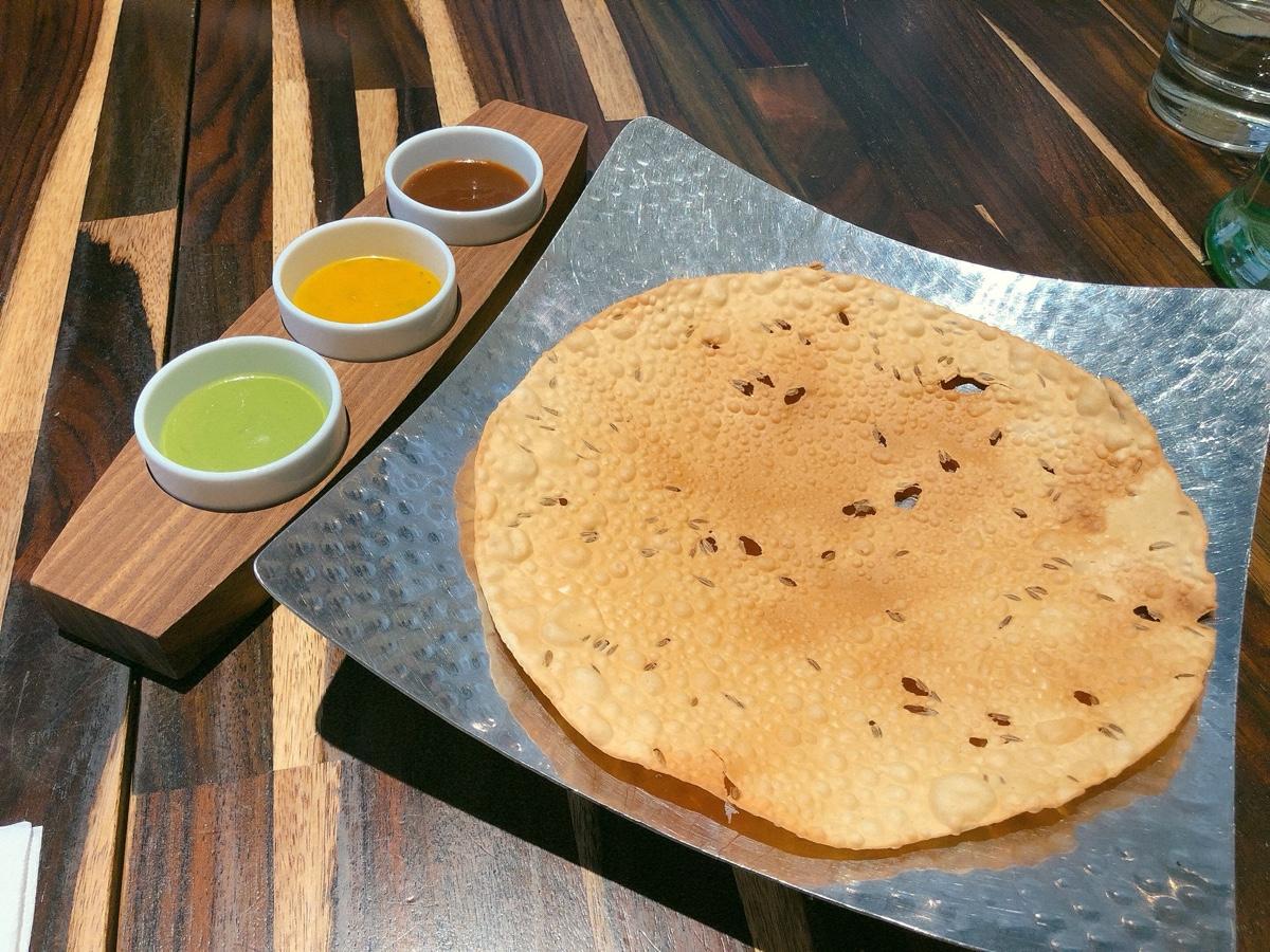 #脆薄片 配上香菜、芒果跟香料醬(忘記名字了)很不錯 #奶油烤雞丁咖哩 的雞肉很嫩,咖哩很濃郁,配上 #印度黃飯 很好吃,印度米長長的跟泰國米又很不一樣,而且都鬆鬆的不會黏在一起,很特別。 #孟加拉咖哩魚 不知道是什麼魚,炸過之後再淋上咖哩,魚肉蠻嫩的,咖哩雖然跟雞丁的顏色很像,可是味道卻很不一樣,多了椰奶的味道。 #奶油烤餅 超好吃😋很軟Q,手撕很有快感! #牛奶燉米布丁 跟之前吃到的又很不一樣,長米加上香料去燉煮,不會太甜,很特別但是吃多了會膩。