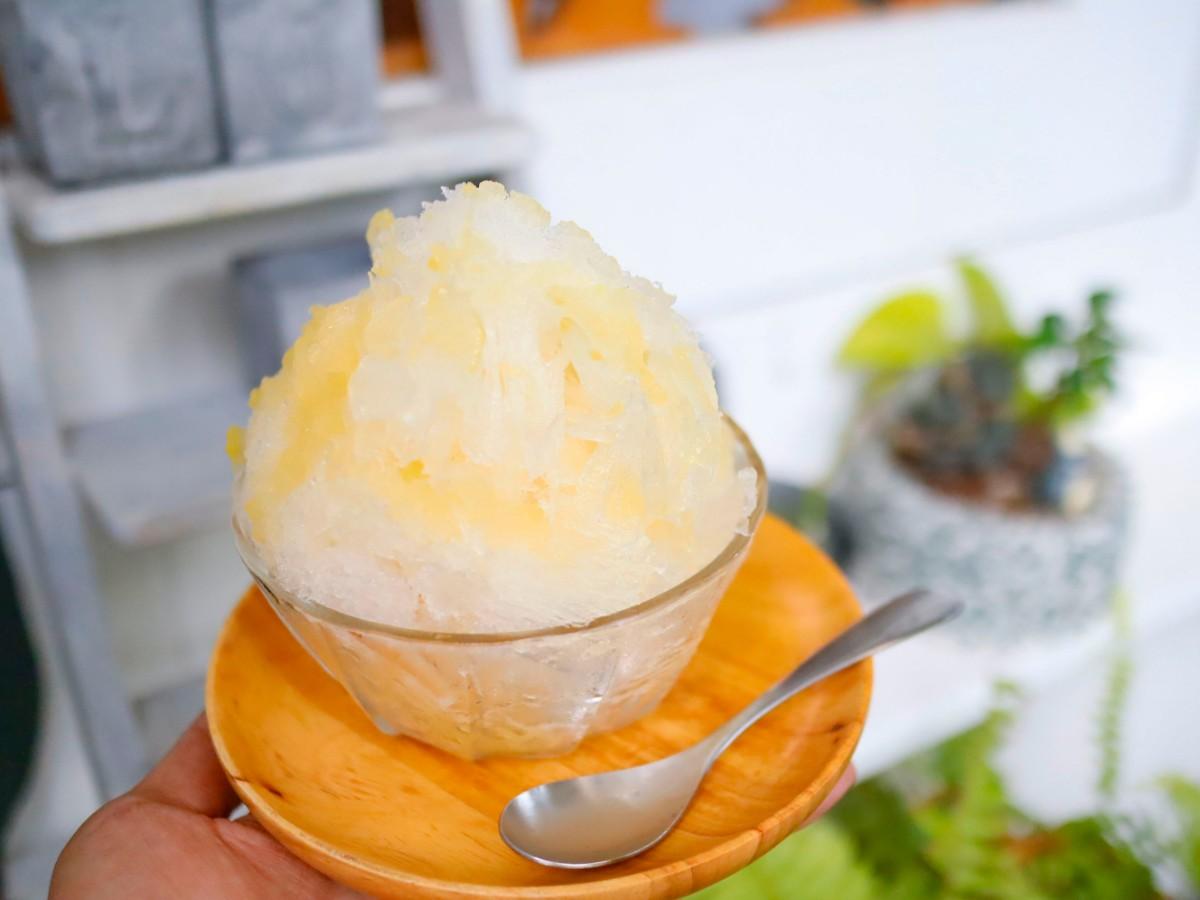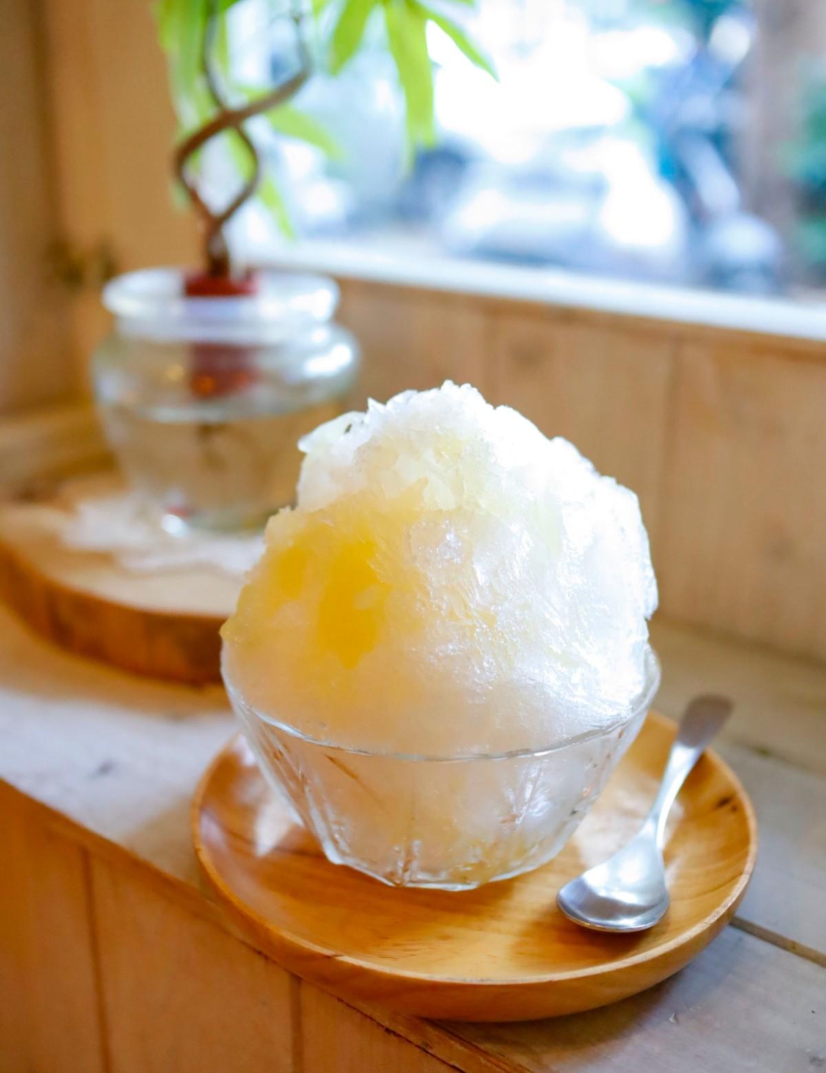 淋上自製的檸檬糖漿,冰體灑上海鹽更能展現出微微的甜度。銀白冰羽下藏有一顆鳳梨雪貝相當驚喜,使得埋藏冰羽下的雪貝沒這麼容易化,入口滿是鳳梨香。