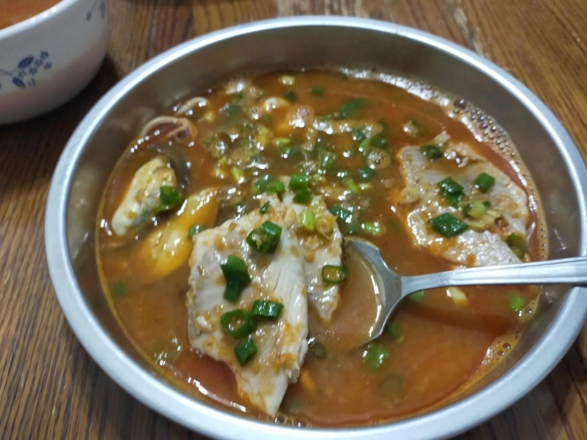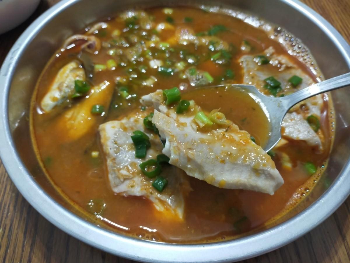 湯品的成分為石斑魚骨熬製的魚高湯再加上沙蟹/米酒/洋蔥/番茄糊與奶油等調味