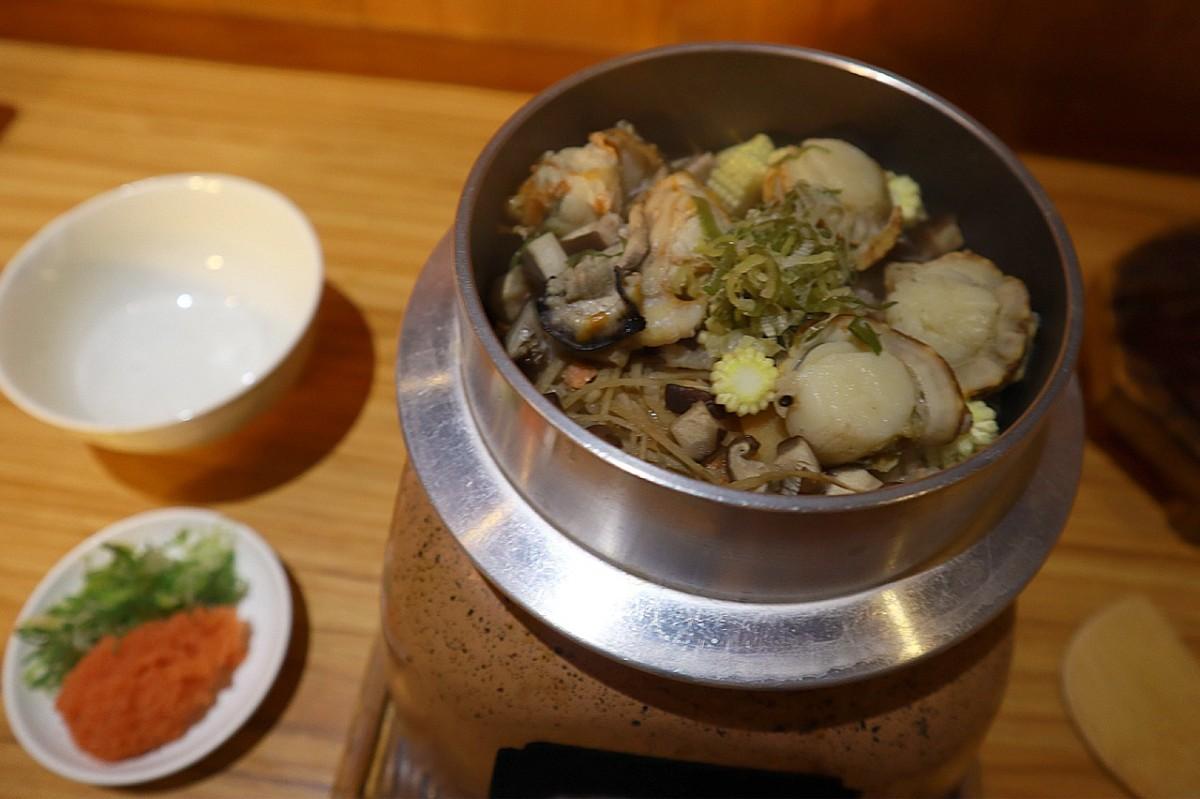帆立貝、鮮蚵、玉米筍、牛蒡絲、香菇等配料