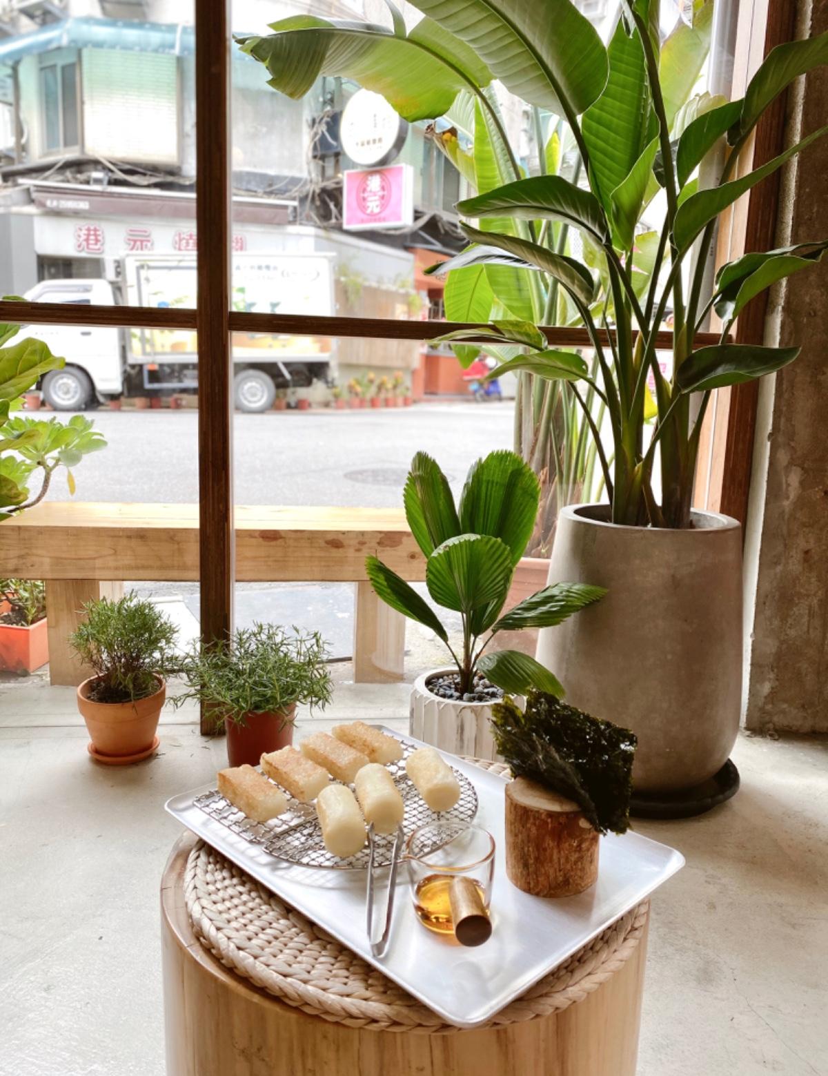 有兩種年糕 一種是一般米一種是糯米做滴 搭配上🐝蜂蜜和鹹甜海苔片 搭起來還蠻特別的✨