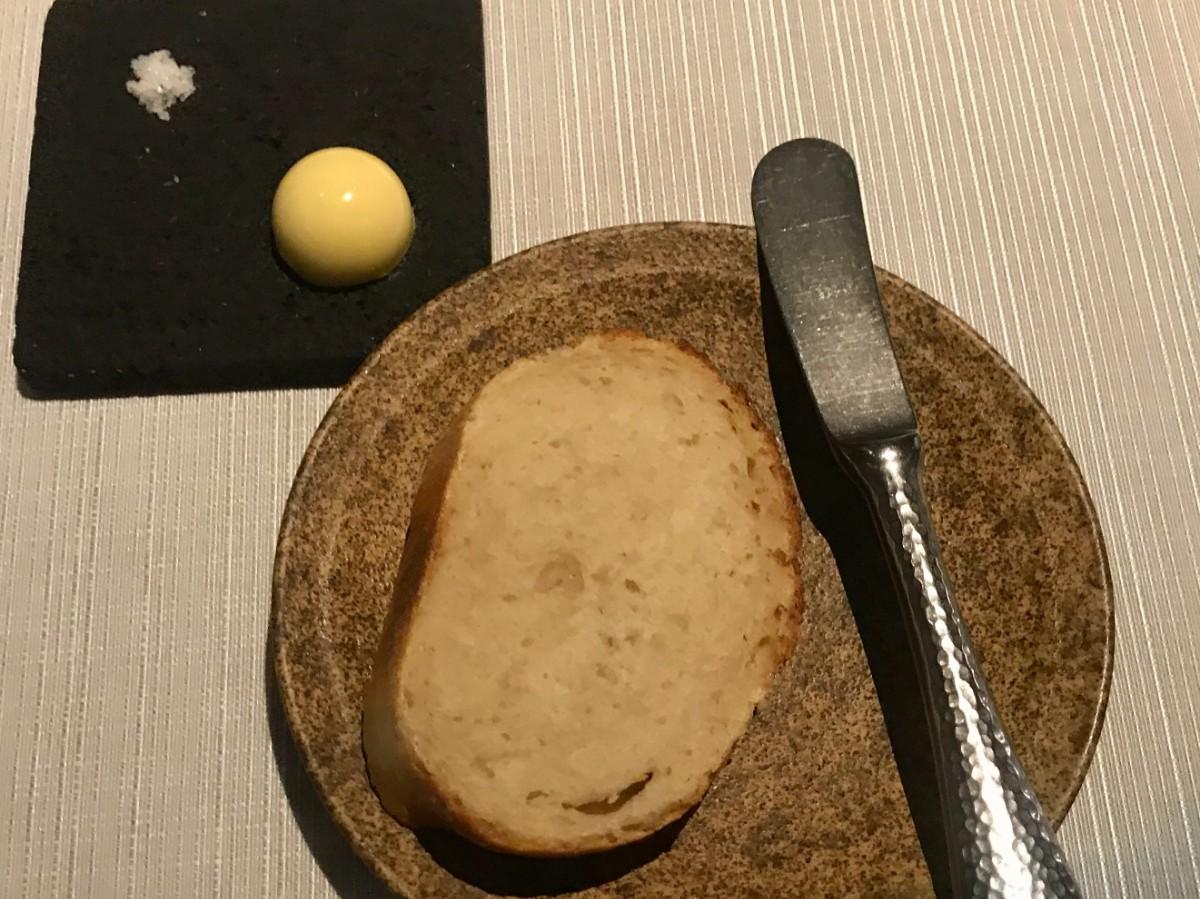 胃開了之後,隨後就送上能夠及時果腹的澱粉。麵包是來自法國的甜點主廚手作,奶油則是提供苗栗四方牧場鮮奶油製成的自製奶油和法國鹽之花。