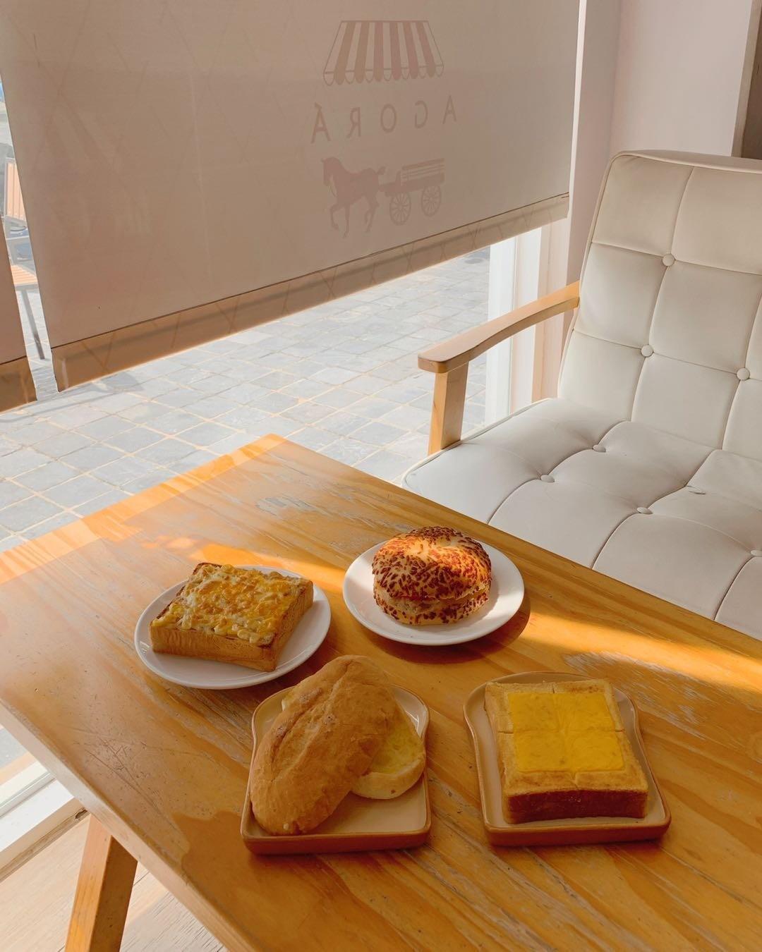 挑選一份喜歡的早餐,一份貝果、一份吐司,再來杯一杯咖啡,到靠窗邊位置坐下,享受著健康的美味,不慌不忙,換來元氣滿滿的好狀態。