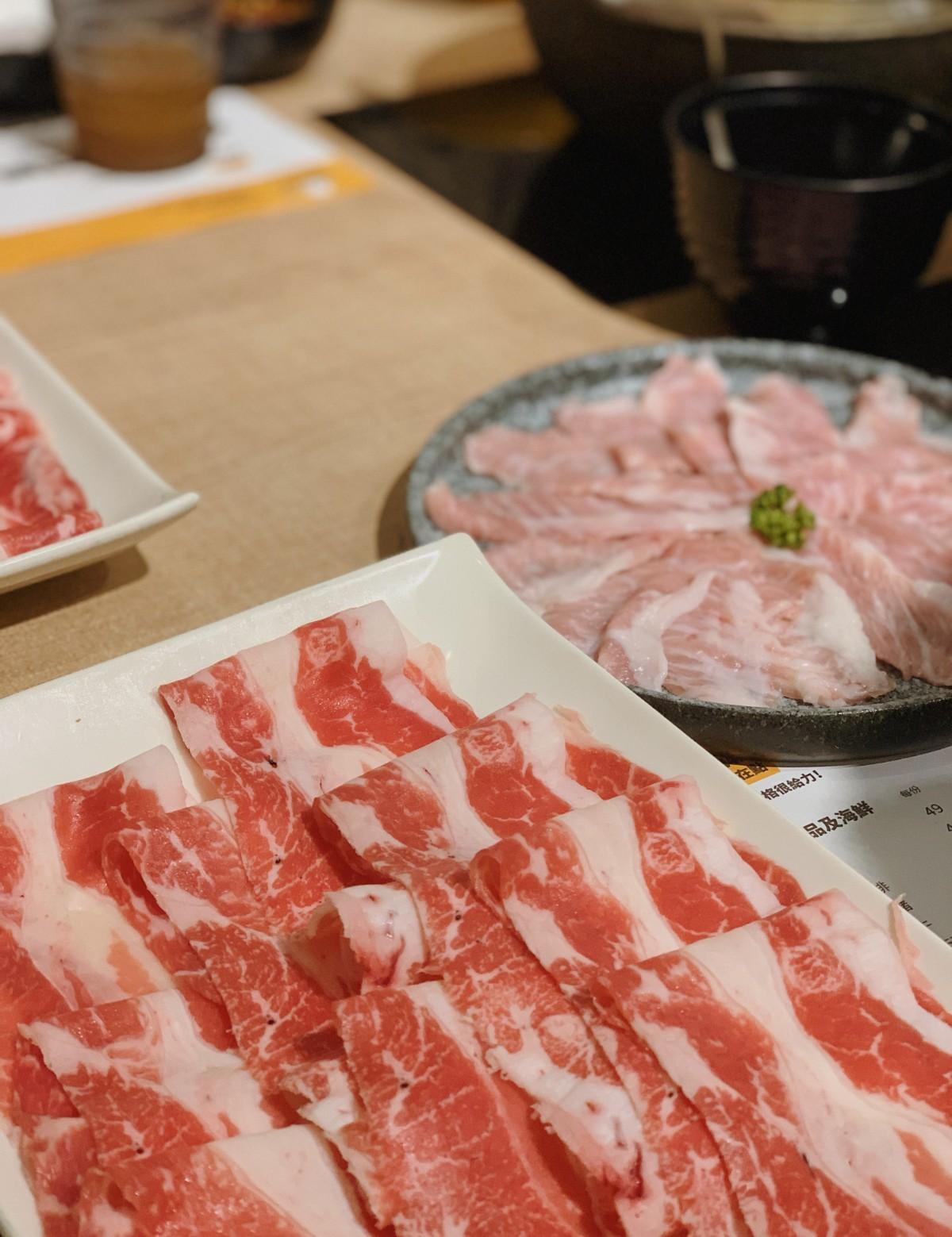 此次肉品我覺得最好吃的就是板腱牛,是不喜歡多油花的朋友點的; 覺得它的肥瘦分佈適中,吃起來不會太乾柴。