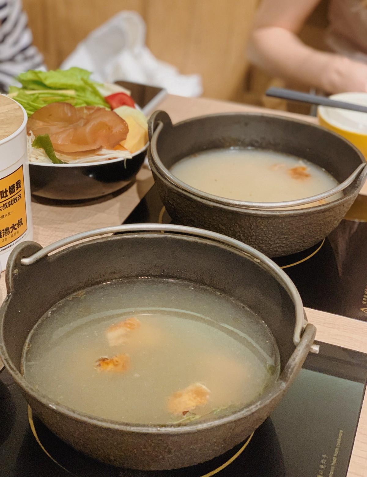 第一次吃鍋遇到餐前試喝湯底的服務,這次是喝了兩種常態湯底「蔬果雞湯」、「白蘭地燉雞湯」,以及季節限定新湯底「法式絲瓜濃湯」。