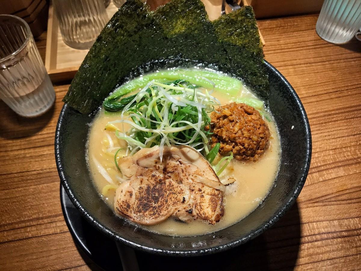 粗麵麵條較寬,口感Q彈有勁、容易吸附湯汁。豚骨湯頭滑順不膩口、豚骨香氣足,搭配辣肉末很爽口,吃起來很開胃,且肉末入味有嚼勁,別有一番風味。