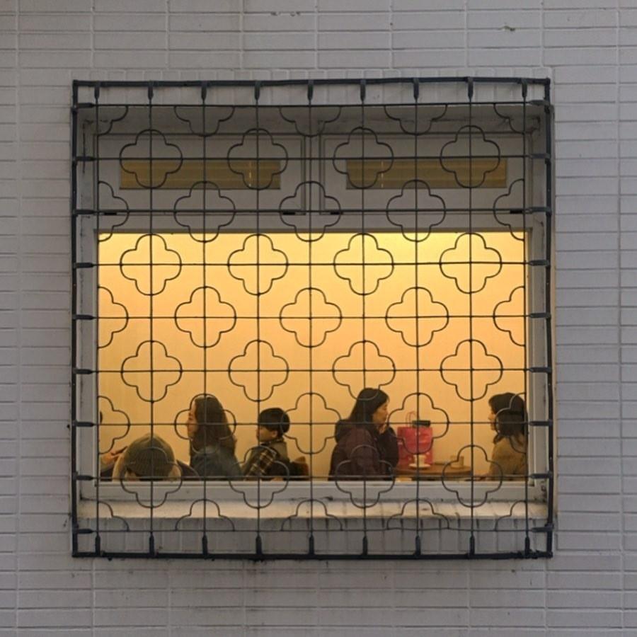 有可愛小鐵窗的咖啡廳