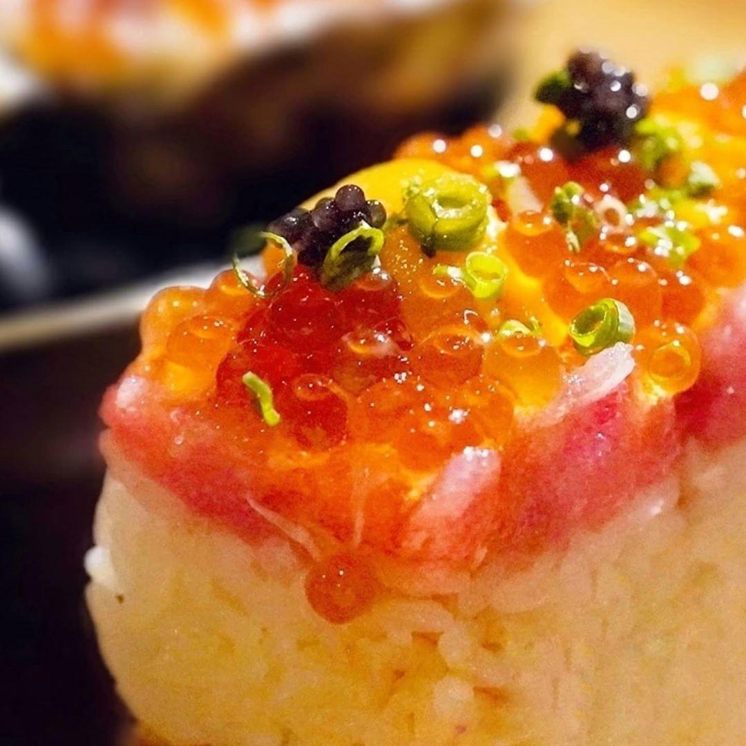 全長50cm堪稱全台最長壽司,以鮪魚泥、海膽、鮭魚卵食材製作,頂上還佐上魚子醬,噱頭十足、用料實在。