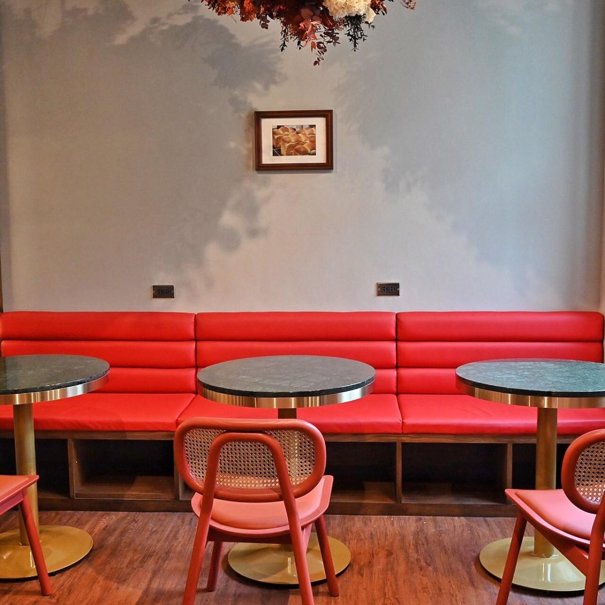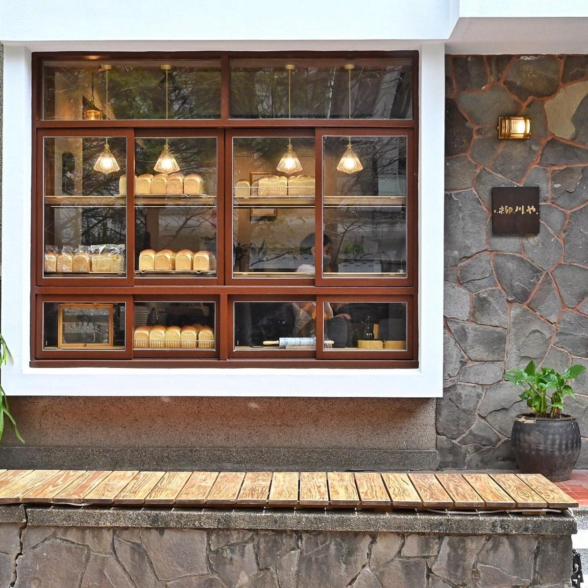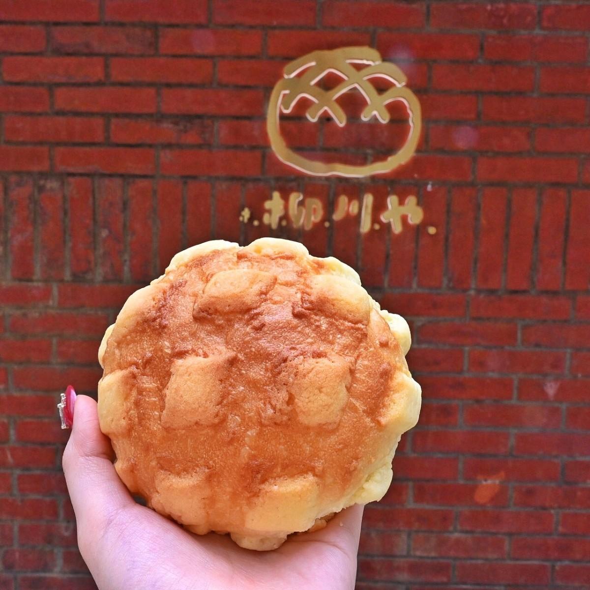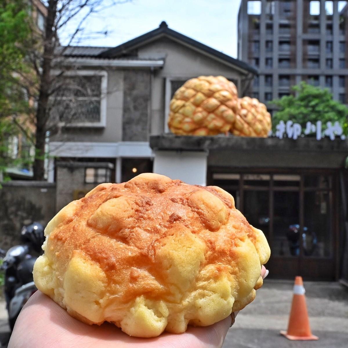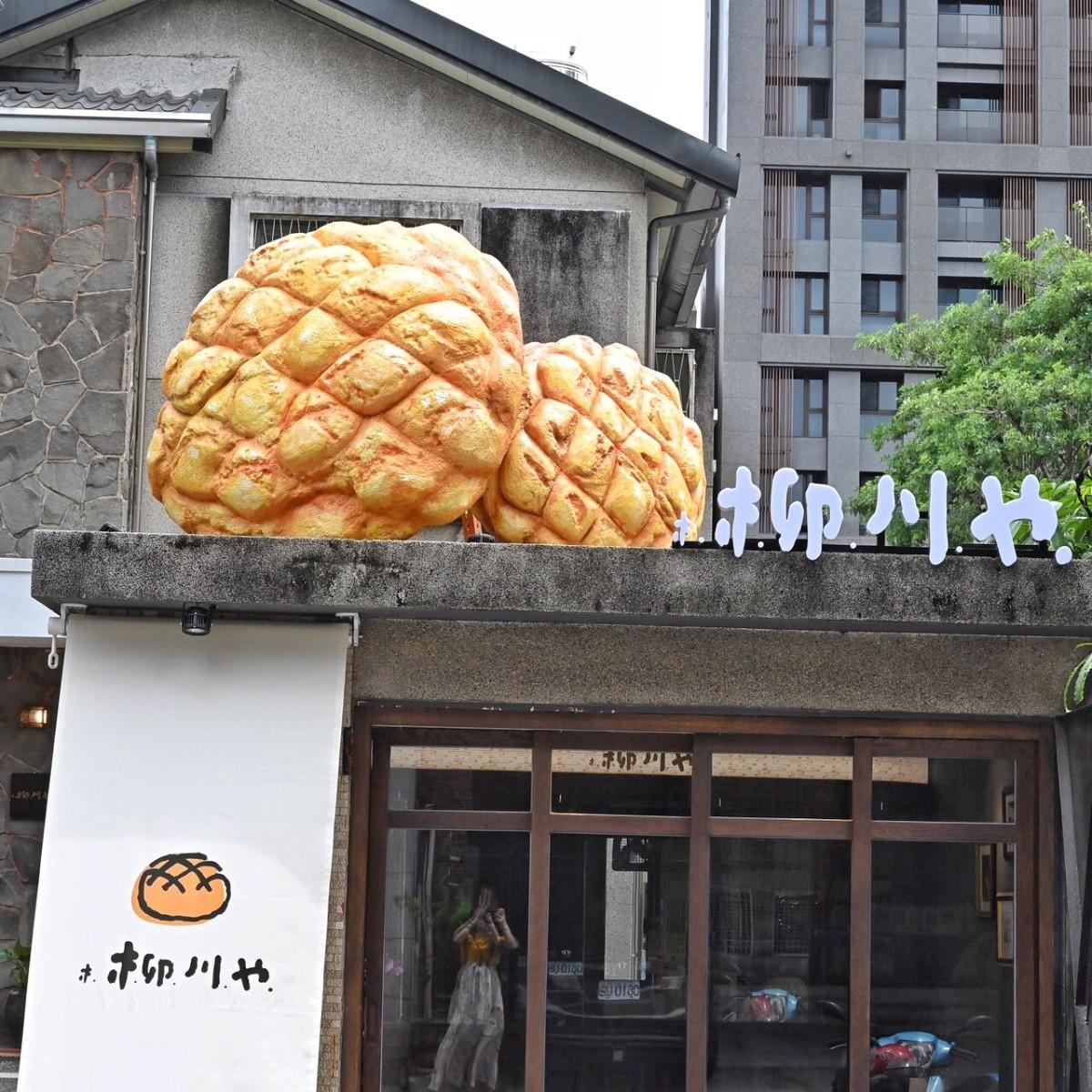 柳川屋三代店也太美了!由51年老宅改造,門口處還有兩顆超大顆的菠蘿麵包,整個超吸睛,還多了內用座位區