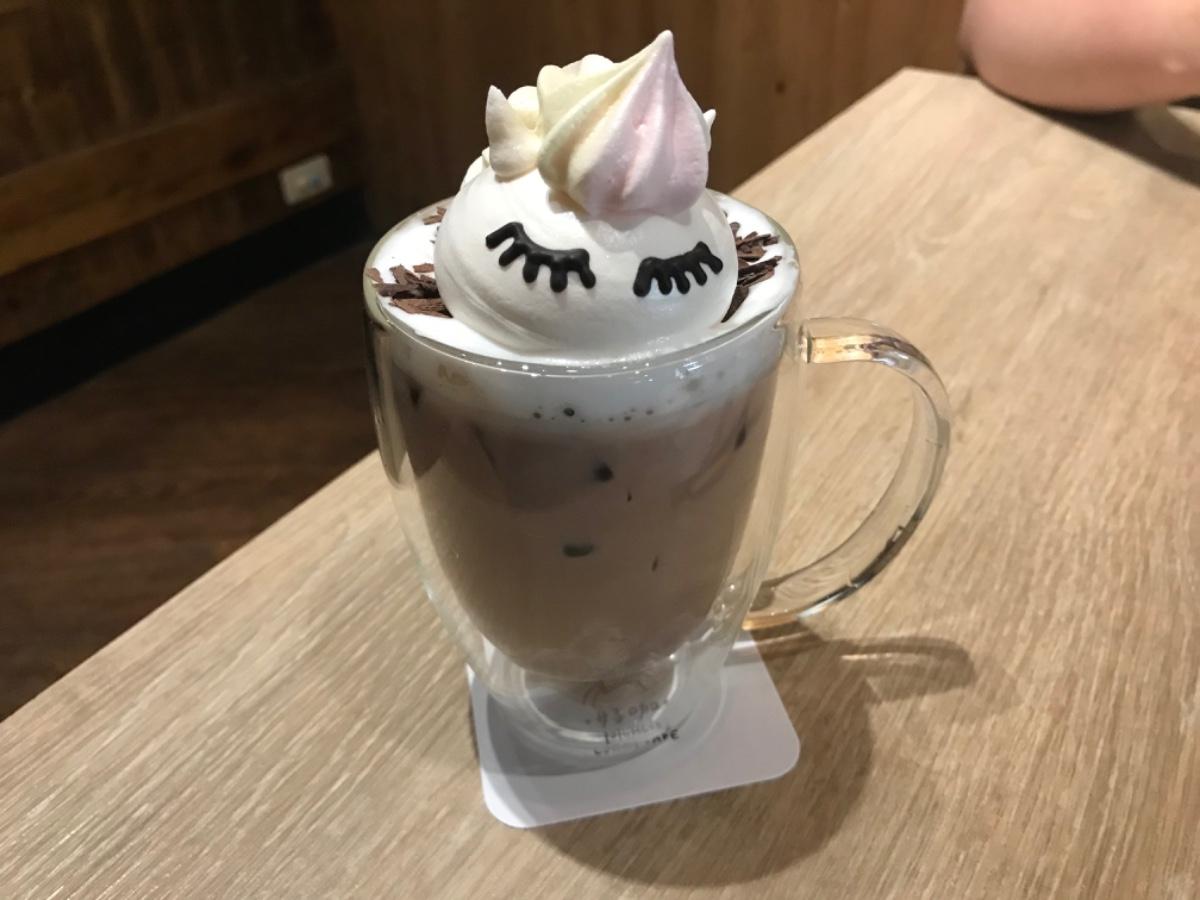 獨角獸之森,裡面加了荔枝酒,但不會太濃郁,用奶油做成的獨角獸,真是美的夢幻,帶點苦可可的香氣,把正常會過甜膩的飲料,平衡的很完美。