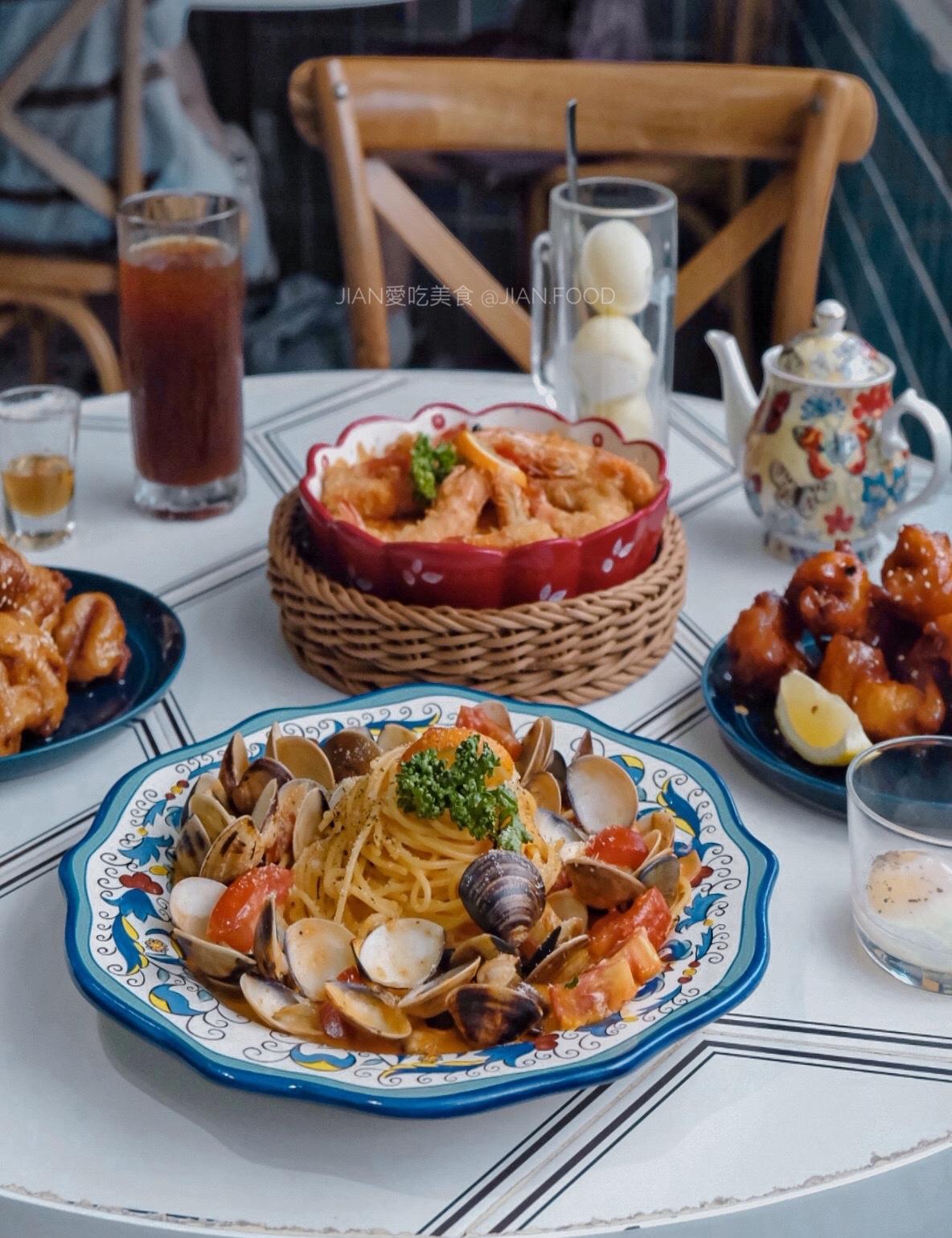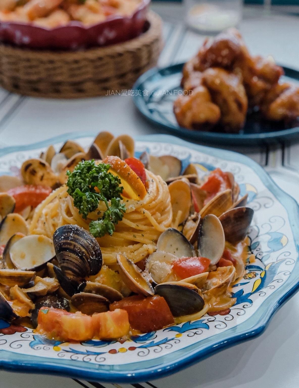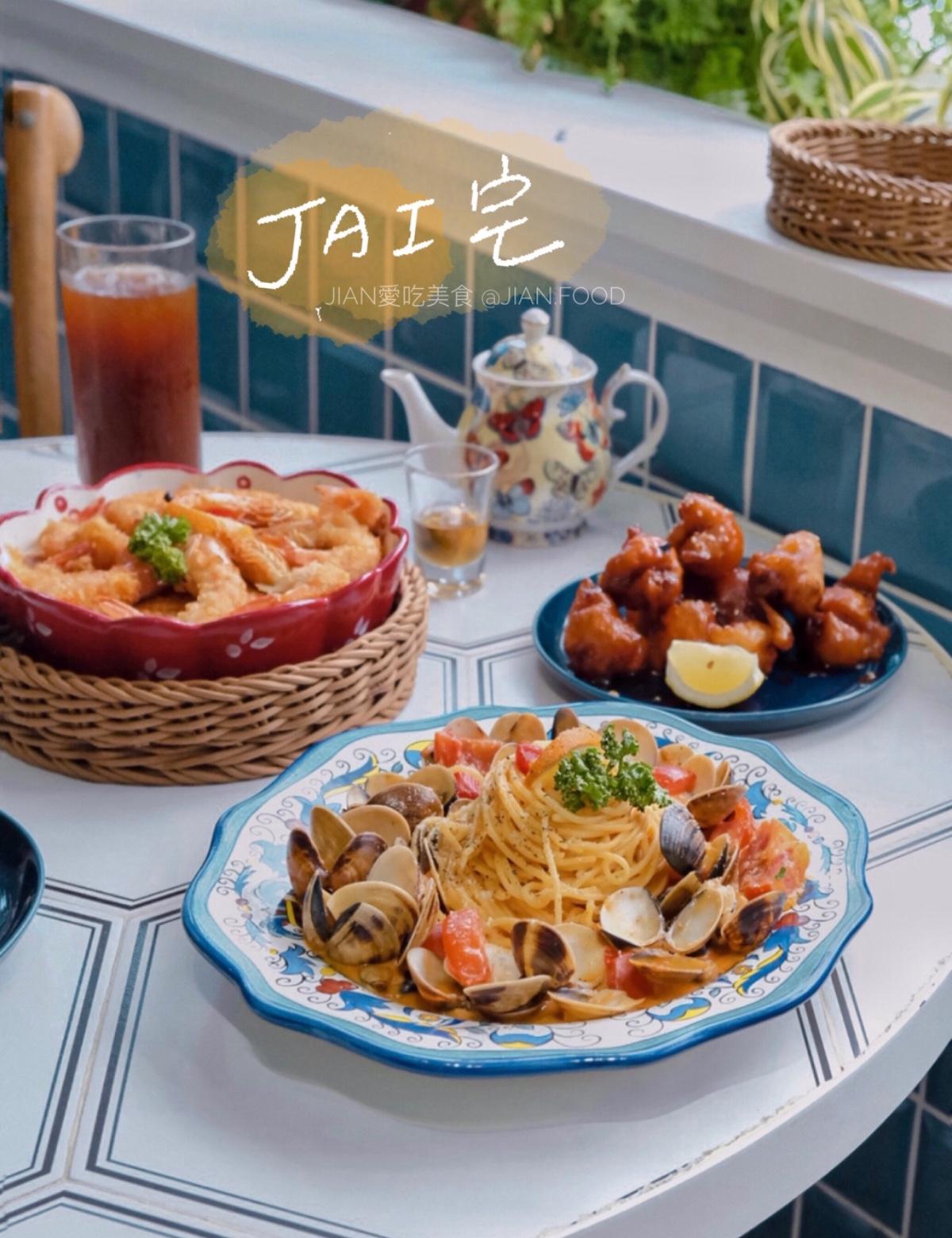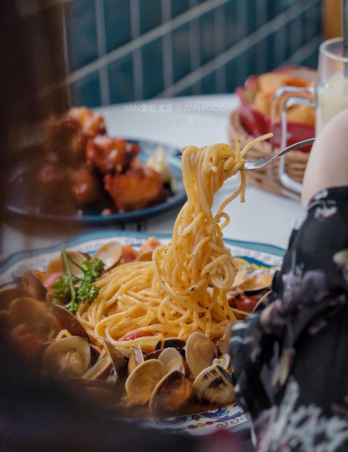 #JAI橘醬爆炸蛤蜊宅宅麵 的橘醬是白醬混合蔬果製成的醬(蕃茄那類?),神奇的是不會膩,還有淡淡的奶香,蛤蜊不是大顆的,但是40顆也夠飽☺️也沒有加麵量,份量也夠,比白醬還多些鮮甜少些奶製的膩,不過醬汁沒有吸附太多在麵體上,稍微有些可惜🥺