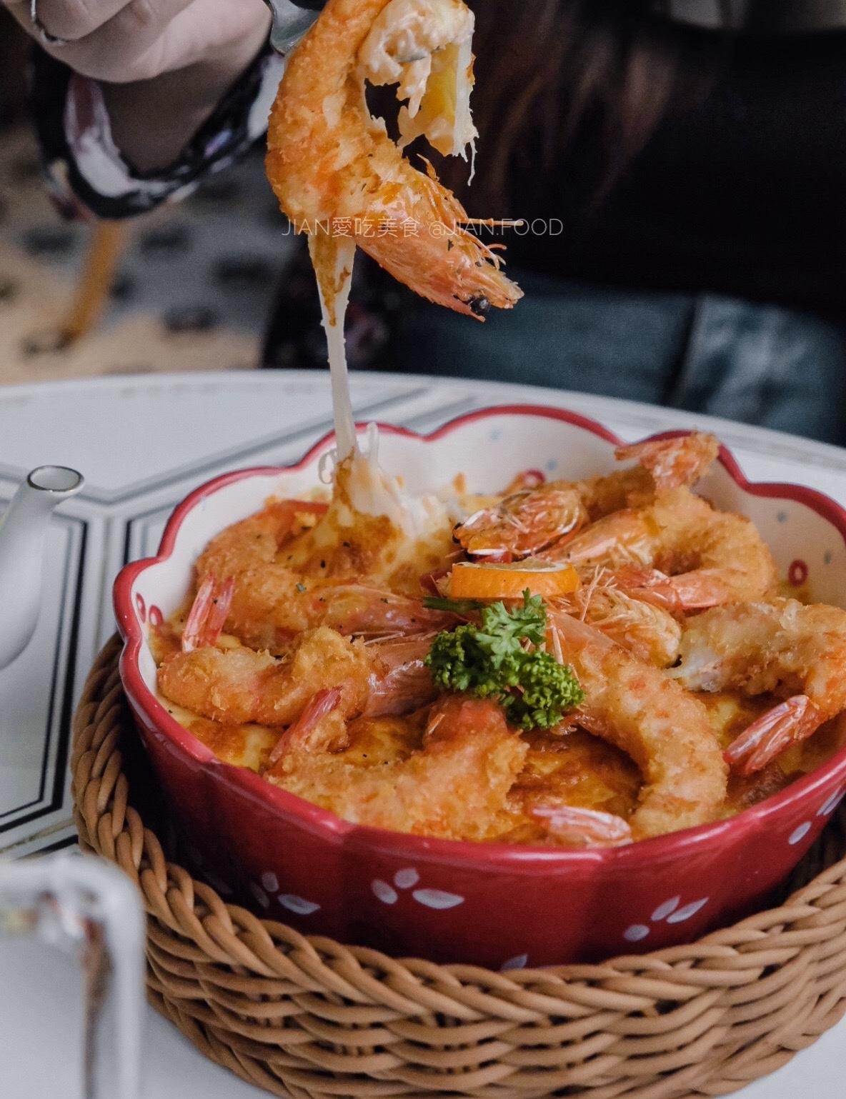 如果特愛海鮮不能錯過 #明太子奶油炸蝦燉飯 ,加上罪惡的焗烤,雖然焗烤最害怕就是會乾,吃得時間拉長不免還是有點乾,明太子完美融合醬中,炸得酥脆金黃的炸蝦肉質Q彈,上桌已經去殼,對於討厭剝蝦殼的人來說太貼心了😤