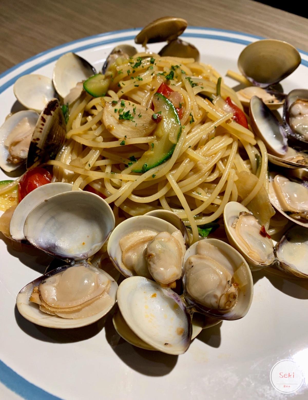 #義士經典原汁蛤蜊麵 (筆管麵/直麵) 💰 $198「新鮮番茄/榤瓜片/羅勒/蛤蜊」,這道我真心覺得cp值很高,蛤蠣滿滿這樣的定價老闆是否太佛心,台北沒有200起跳應該吃不到唷。但也因為用料實在麵吸取了湯汁,每一口都品嘗的到高湯的鮮甜!本次選擇的是直麵,很Q彈且很義式口感,所以如果喜歡台式偏軟的記得先跟店員說唷!