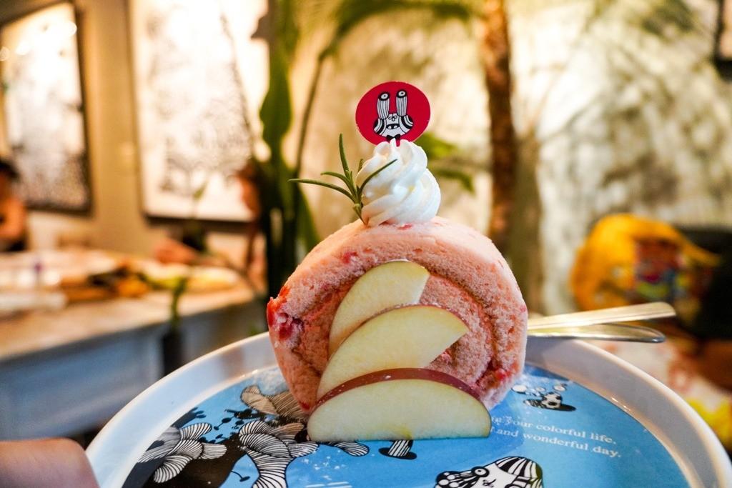 「女人的第二個胃是拿來裝甜點的」這句話完全適用在我身上XDD,貳拾陸巷咖啡每次都會出不同口味的蛋糕,今天我們拿到的甜點是草莓奶油蛋糕捲,草莓蛋糕包裹著草莓果醬,搭配新鮮切片的蘋果與鮮奶油,甜而不膩,為今天的午餐邂逅劃下了完美的句點。