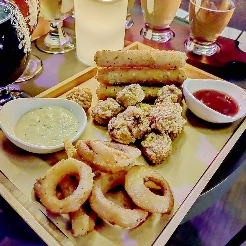 內容物:雞米花,洋蔥圈,起司條。啤酒加炸物等於開心😍尤其是多人聚會的話,拼盤更是非點不可。起司條要記得趁熱吃才能牽絲喔❤