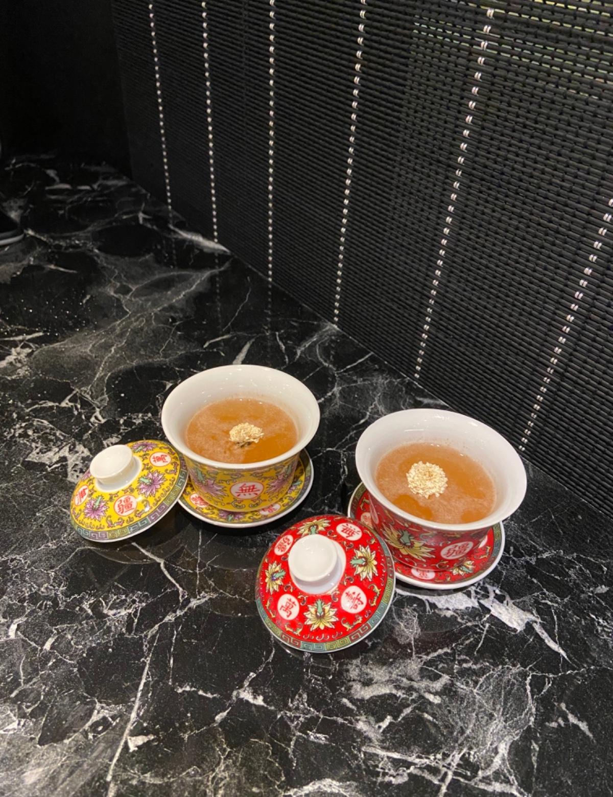 上面泡泡是用卵磷脂加入了伯爵茶和菊花茶,喝起來有股淡淡的茶香