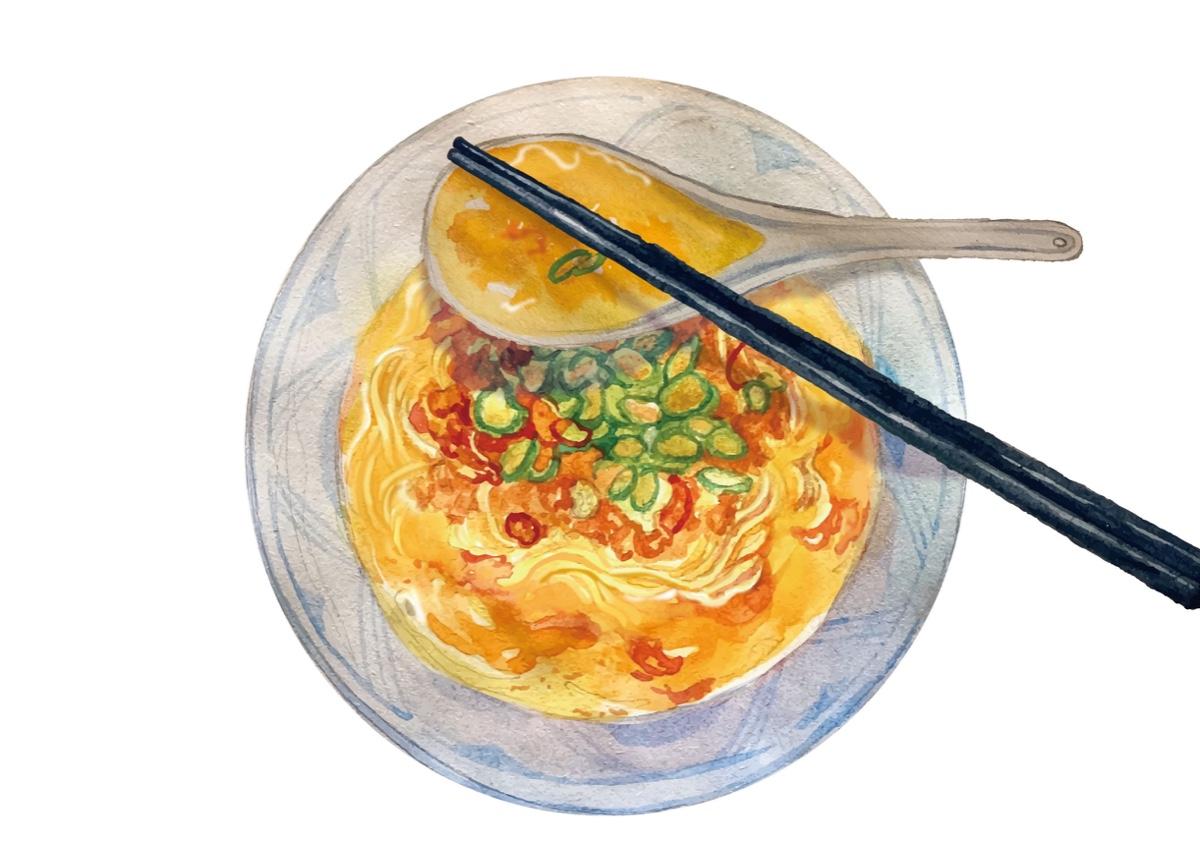 最近新合作的插圖設計 日式紅油擔擔麵🍜🍜🍜 快煮只要6分鐘 深夜食堂立馬開張! 剩下的湯還可以拌飯啊啊啊 插畫設計變成主顧我也是頭一遭了😂 #插畫 #水彩 #illustrations #深夜食堂 #日式沾麵 #紅油 #美食插畫