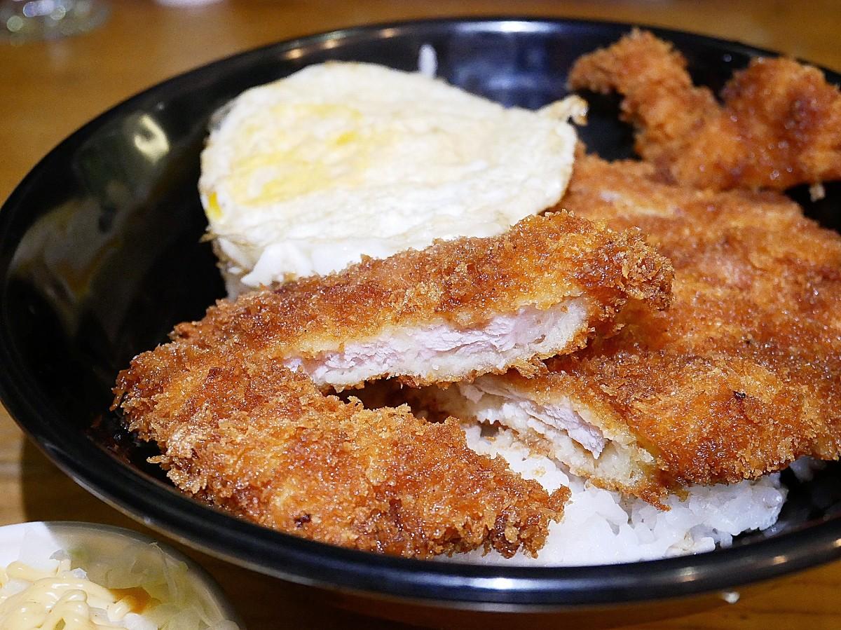 米飯和豬排上頭都有淋醬,所以吃起來不會乾乾的!