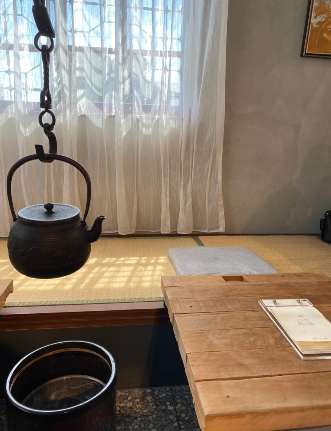 坐在日式榻榻米上喝茶
