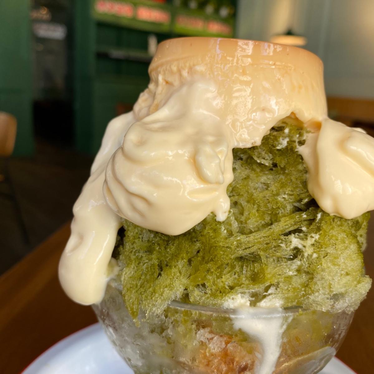 口感上布丁軟嫩細緻,不過和抹茶冰沒那麼合拍,後來是分開解決~